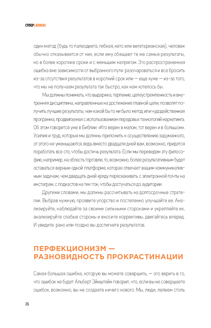 Опираясь как на популярные философские системы, так и на последние изыскания современной психологии, автор представляет нашему вниманию концепцию личности "суперсапиенса". Начав с самых простых действий, которые мы можем внедрить в свою повседневную жизнь, мы шаг за шагом учимся быть более активными, дисциплинированными, ответственными и в конечном счете познавать самих себя, чтобы стать своей улучшенной версией.