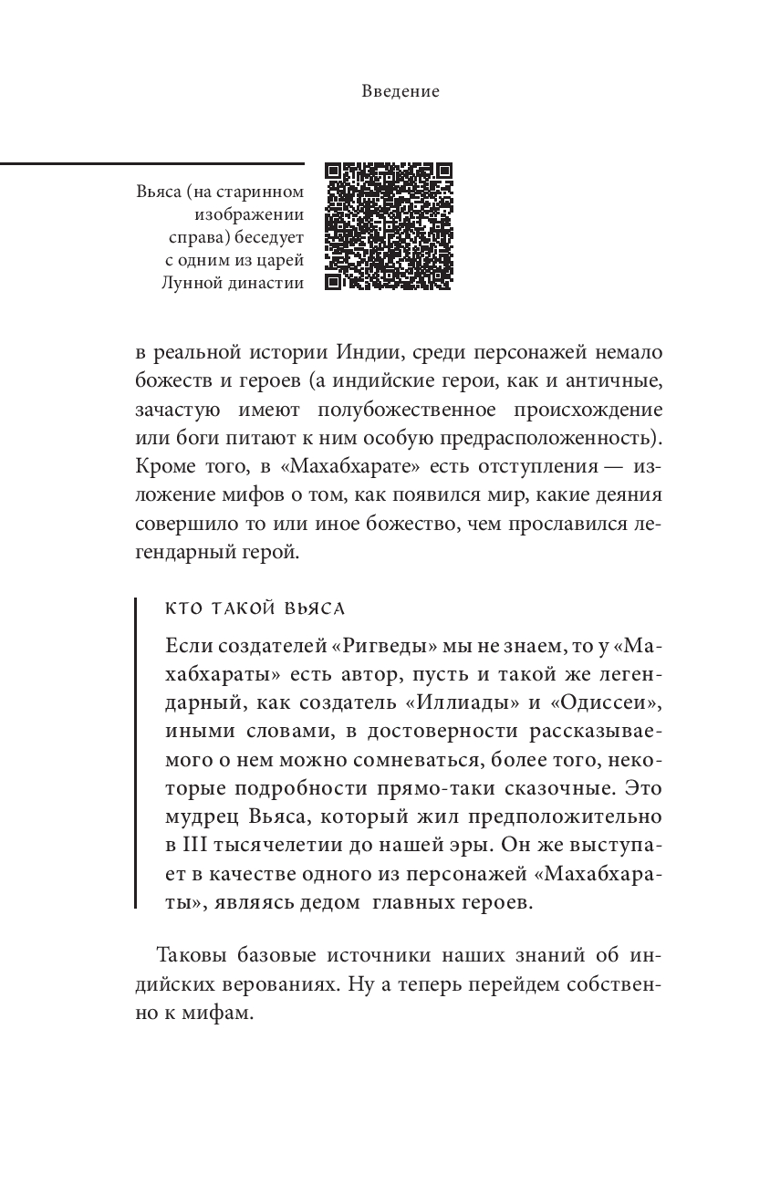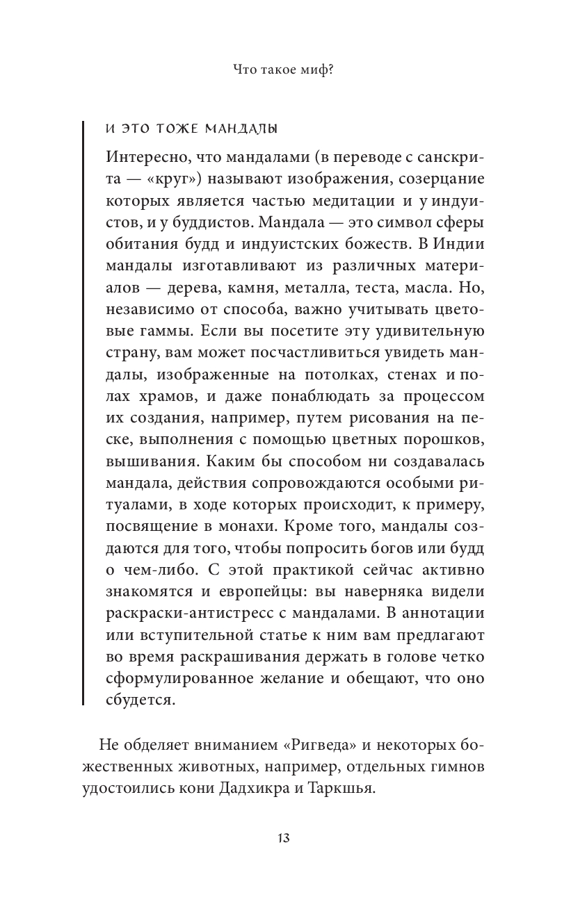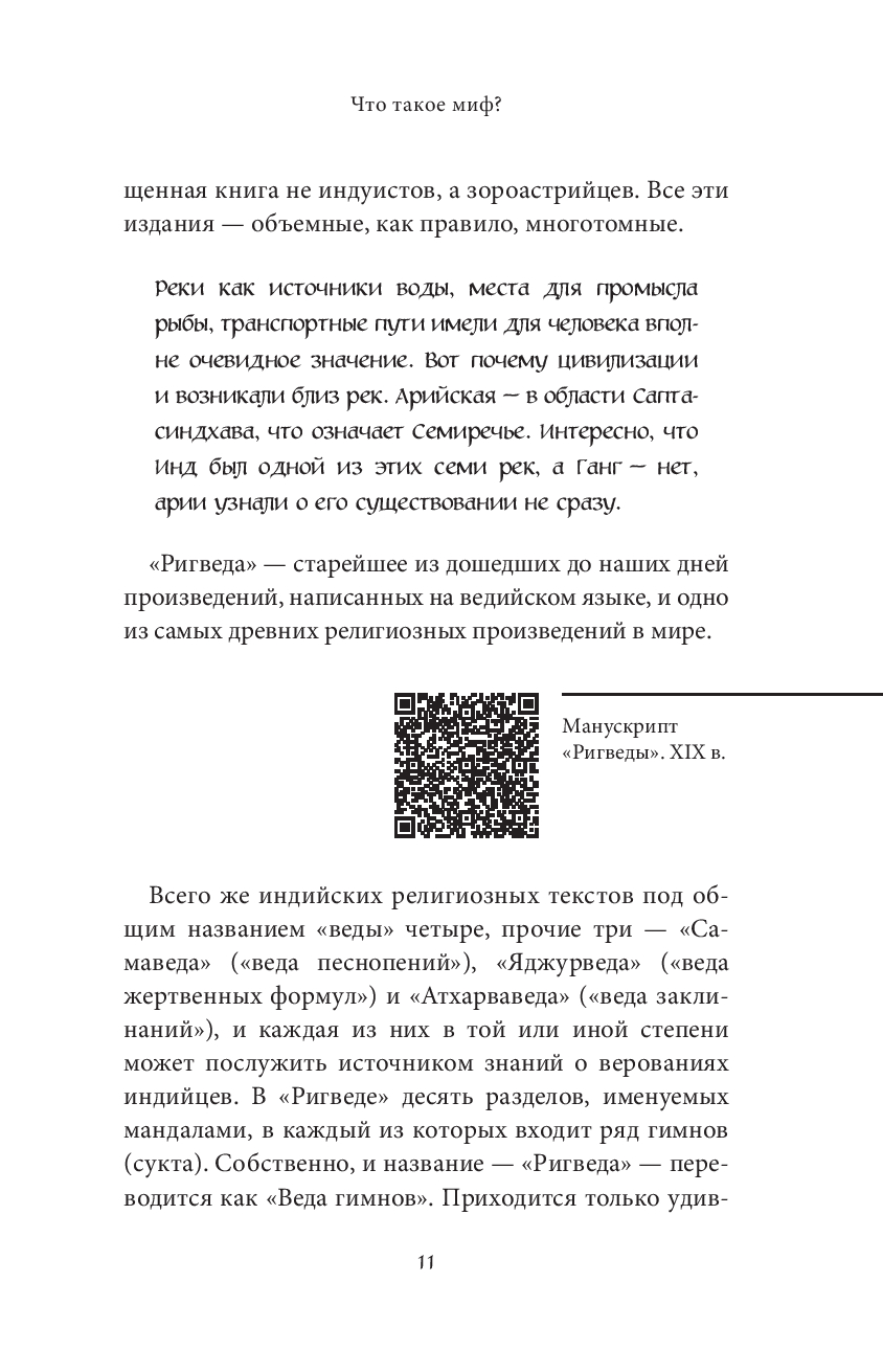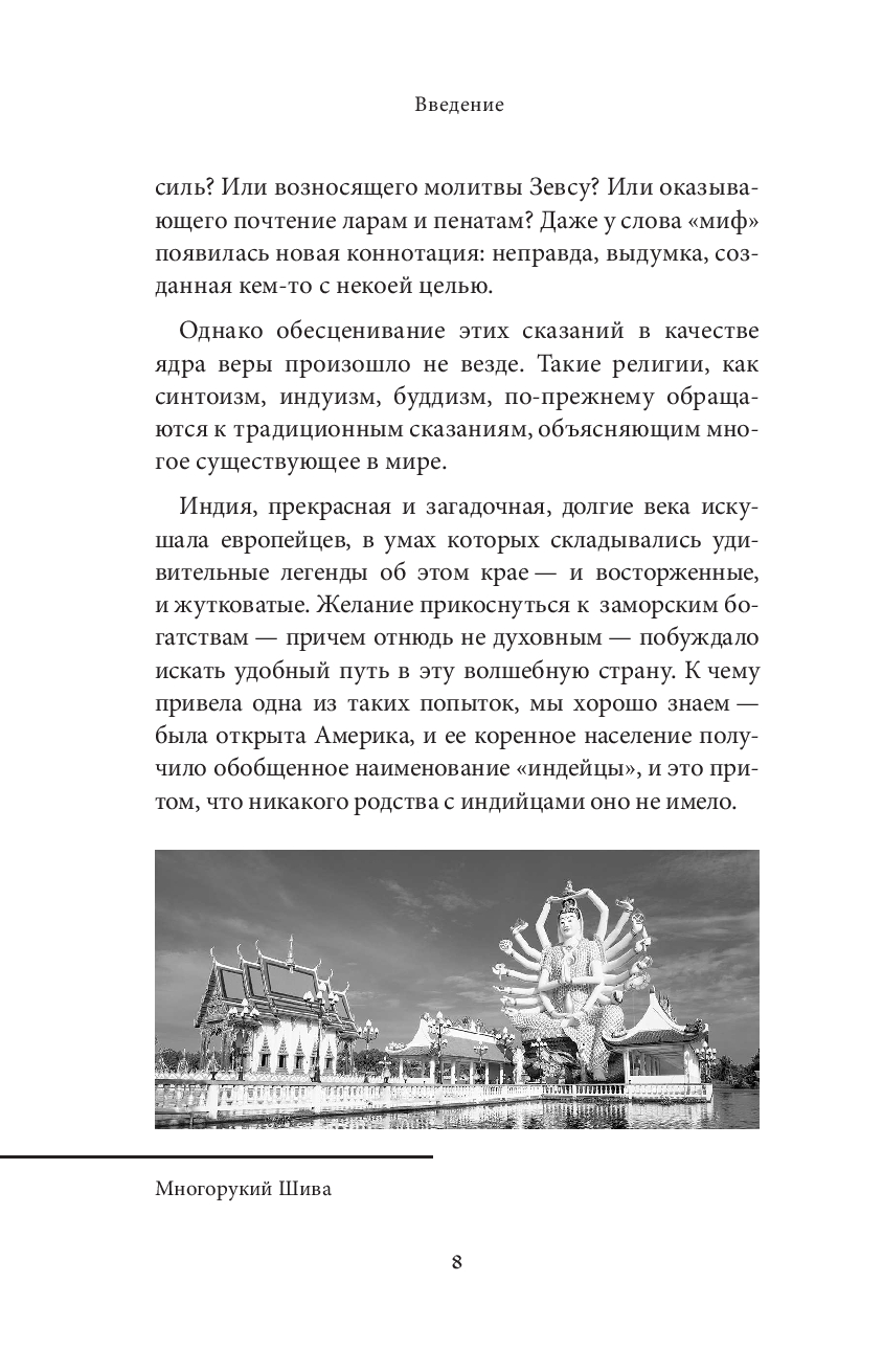 Эта книга приглашает Вас совершить увлекательное путешествие в таинственный и экзотический мир индийской мифологии. Герои этих мифов – могущественные боги и герои, наделенные фантастическими чертами и сверхспособностями, – так похожи на обычных людей: так же любят и ненавидят, заводят семьи и ведут войны, побеждают и проигрывают, достигают просветления и несут наказание за дурные поступки. Вы узнаете, как весь мир появился из тела великана Пуруши, почему боги не едят рыбу, кто такие ваханы и как связаны между собой Брахма, Вишну и Шива.