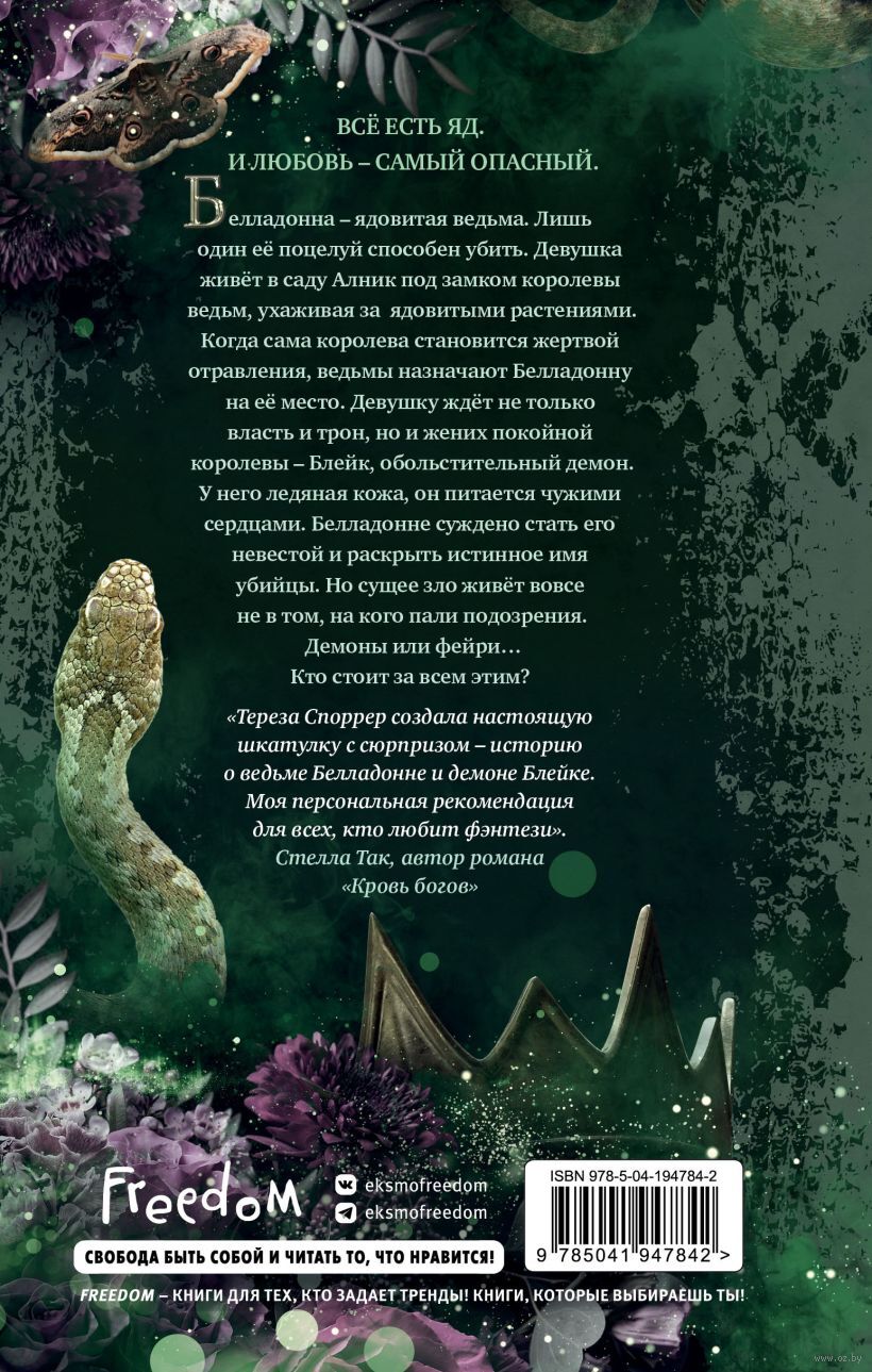 Белладонна – ядовитая ведьма. Лишь один ее поцелуй способен убить. Девушка живет в саду Алник под замком королевы ведьм, ухаживая за ядовитыми растениями мира. Когда сама королева становится жертвой отравления, ведьмы назначают Белладонну на ее место. Девушку ждет не только власть и трон, но и жених покойной королевы – Блейк, обольстительный демон. У него ледяная кожа, он питается чужими сердцами. Белладонне суждено стать его невестой и раскрыть истинное имя убийцы. Но сущее зло живет вовсе не в том, на кого пали подозрения. Демоны или фейри... Кто стоит за всем этим?