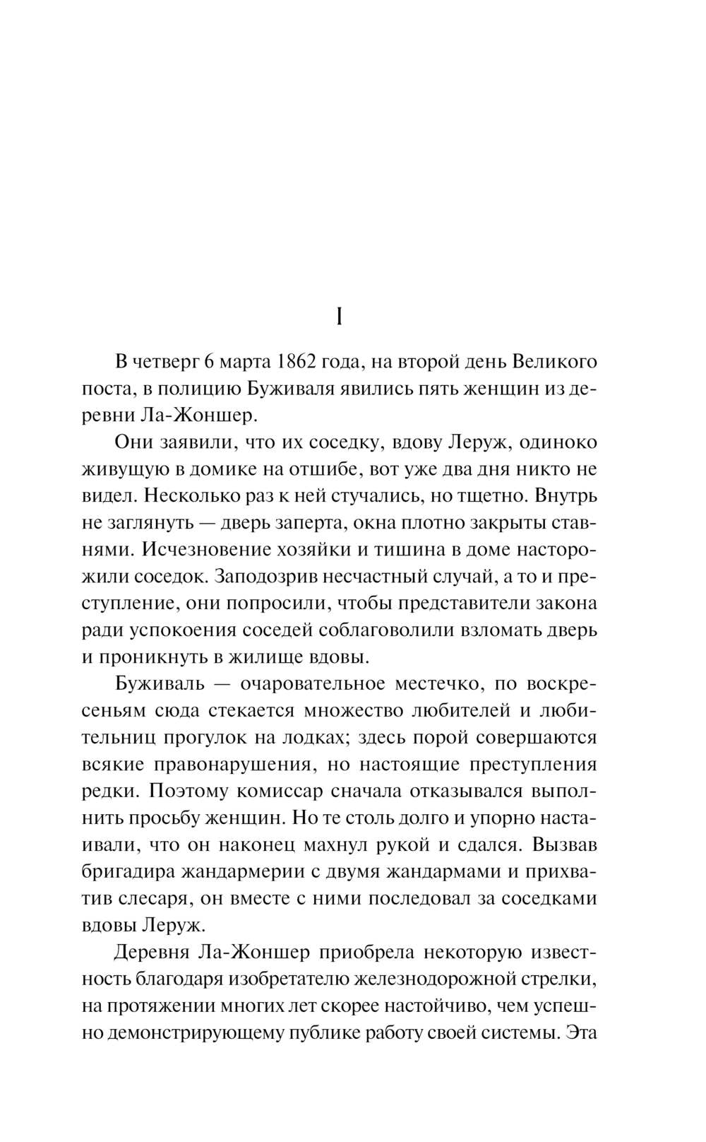 Жестокое преступление потрясло тихий маленький городок Буживаль. Вдова Леруж зверски убита в своем доме. На место преступления направлены следователь Дабюрон, шеф полиции Жевроль и его помощник Лекок, который подключает к делу своего мудрого наставника папашу Табаре по прозвищу Загоню-в-угол. Все улики указывают на молодого человека из хорошей семьи. Кажется, что убийца найден и дело можно закрывать, но некоторые факты заставляют папашу Табаре сомневаться и взглянуть на убийство под другим углом...