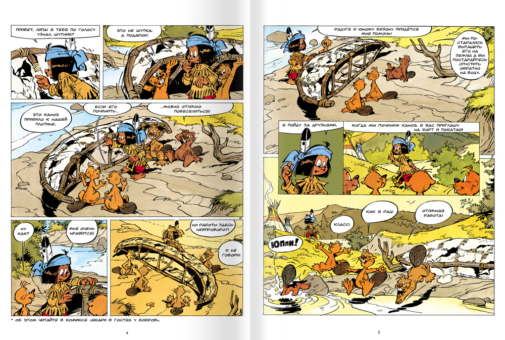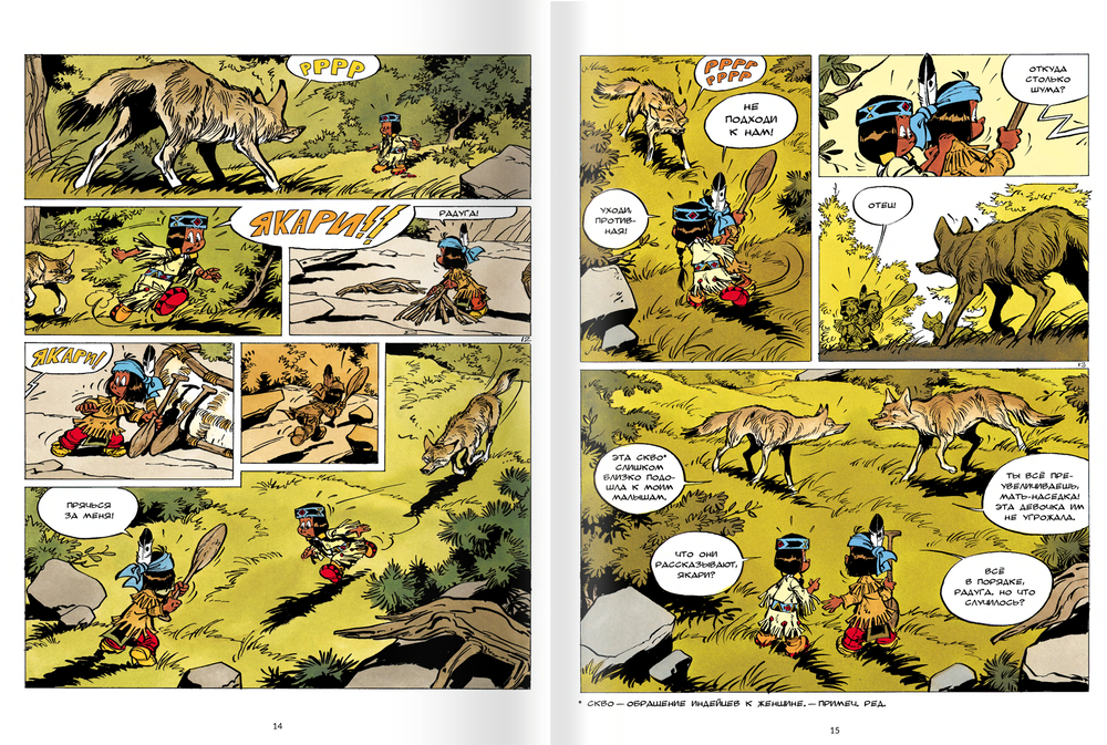 В новой книге о Якари ловкий и хитрый койот становится его другом. Он не боится зверя крупнее себя, потому что у него есть план, а в опасный момент, притворившись мёртвым, он обманет преследователя.