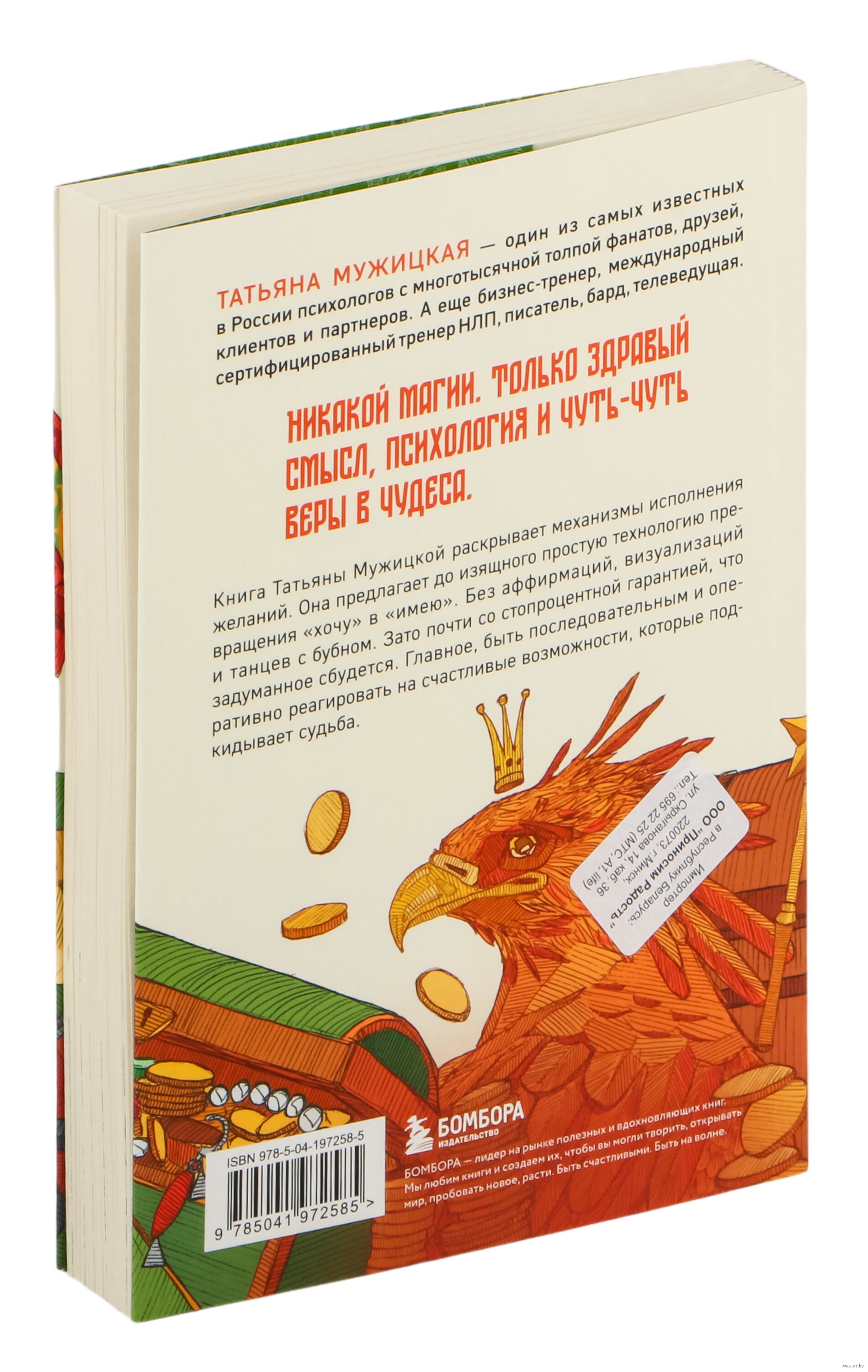 Более двадцати лет ведения психологических тренингов и консультаций натолкнули Татьяну Мужицкую на мысль, что ключ к бесперебойному исполнению желаний лежит в объединении двух подходов: рационального и иррационального. Плюс – в устранении психологических ограничений, сидящих в головах большинства из нас. Другими словами, разрешению мечтам сбываться.