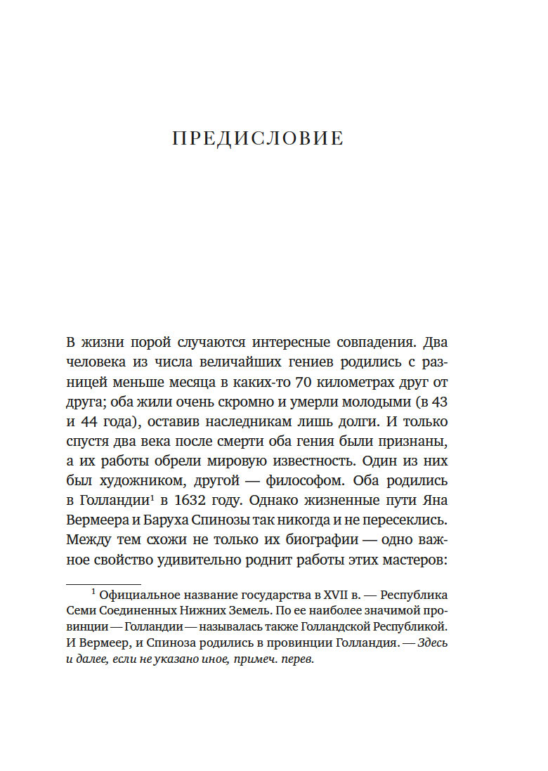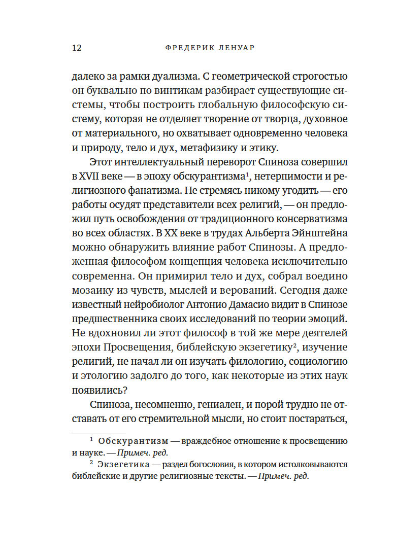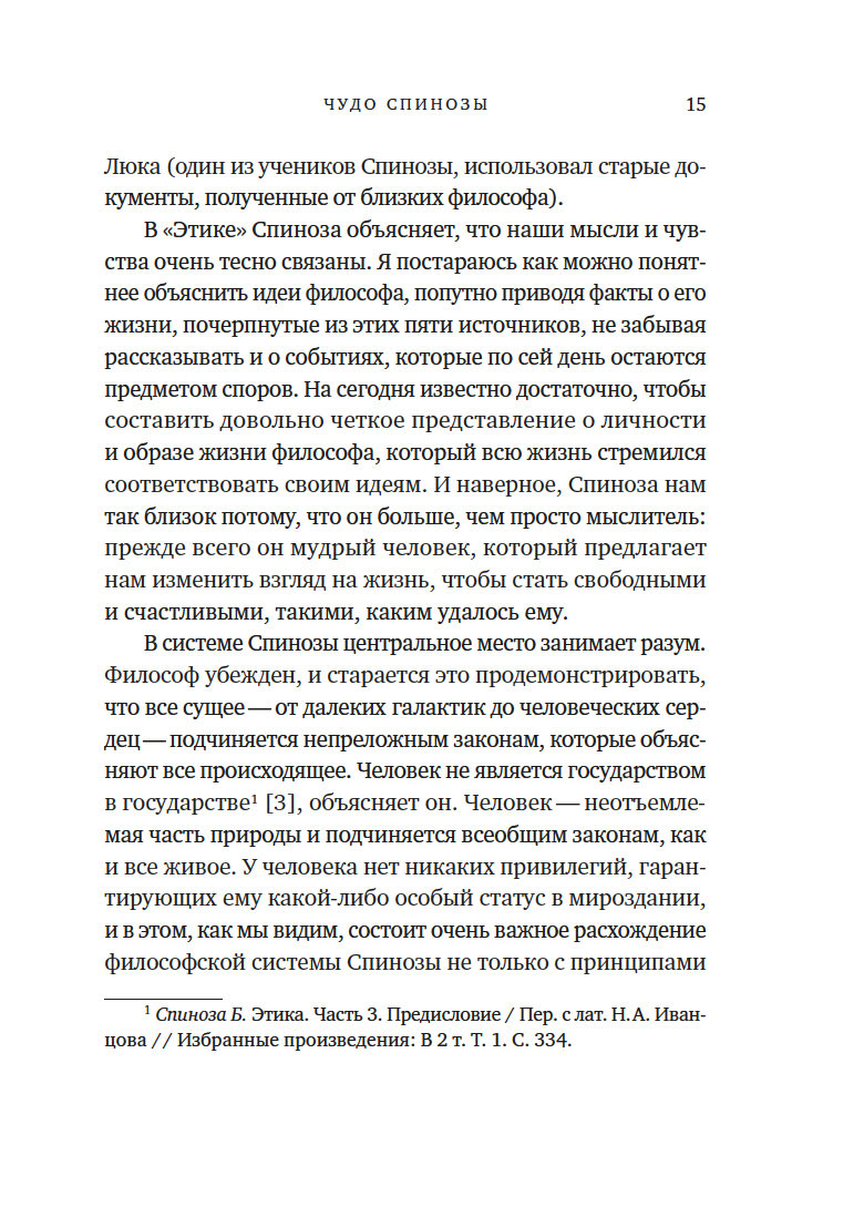 Труды Спинозы произвели революцию в области философии. В далеком XVII веке этот человек предвосхитил приход эпохи Просвещения и современную форму демократии, стал основоположником историко-критического подхода к толкованию Священного писания и заложил основы глубинной психологии. Но прежде всего Спиноза разработал философскую систему, основанную на умении верно направлять свои желания и таким образом достигать истинной радости – систему, полностью изменившую нашу концепцию Бога, морали и счастья. Во многом этот философ опередил не только свою эпоху, но и нашу с вами. Именно это и называется чудом Спинозы.