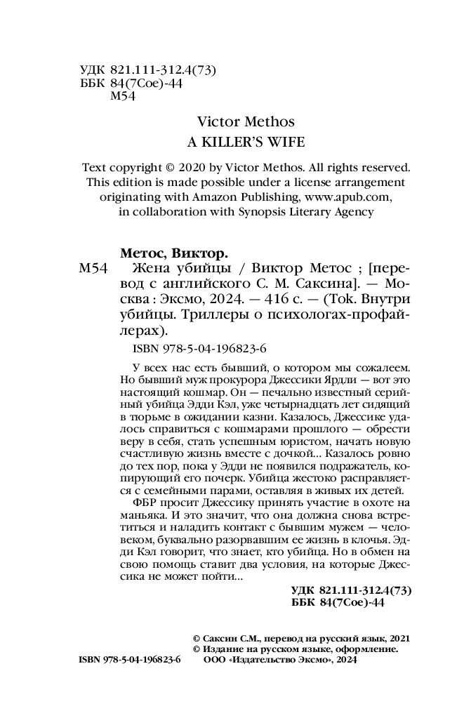 | Серия | Tok. Внутри убийцы. Триллеры о психологах-профайлерах |