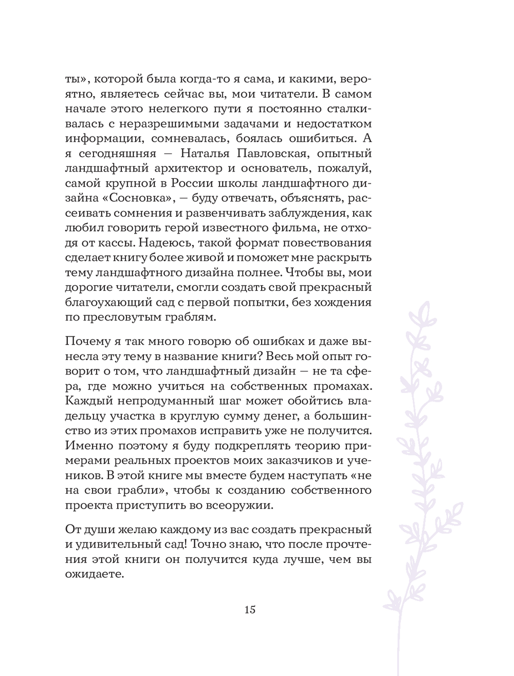 Сегодня Наталья Павловская – ландшафтный архитектор с 20-летним опытом и владелица крупнейшей школы ландшафтных дизайнеров в России. В этой книге она делится секретами планировки сада с теми, кто мечтает о красивом участке, но не знает, с чего начать.