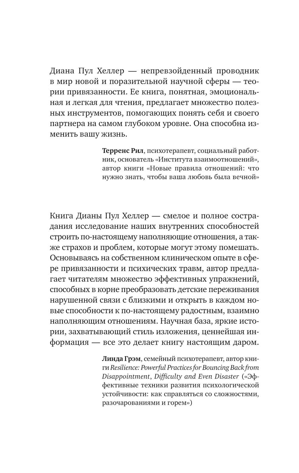 Диана Пул Хеллер – доктор наук, признанный эксперт по теории и моделям привязанности у детей и взрослых, терапии психической травмы и интегративным методам психотерапии, разработала собственный курс по работе с травмами привязанности у взрослых.