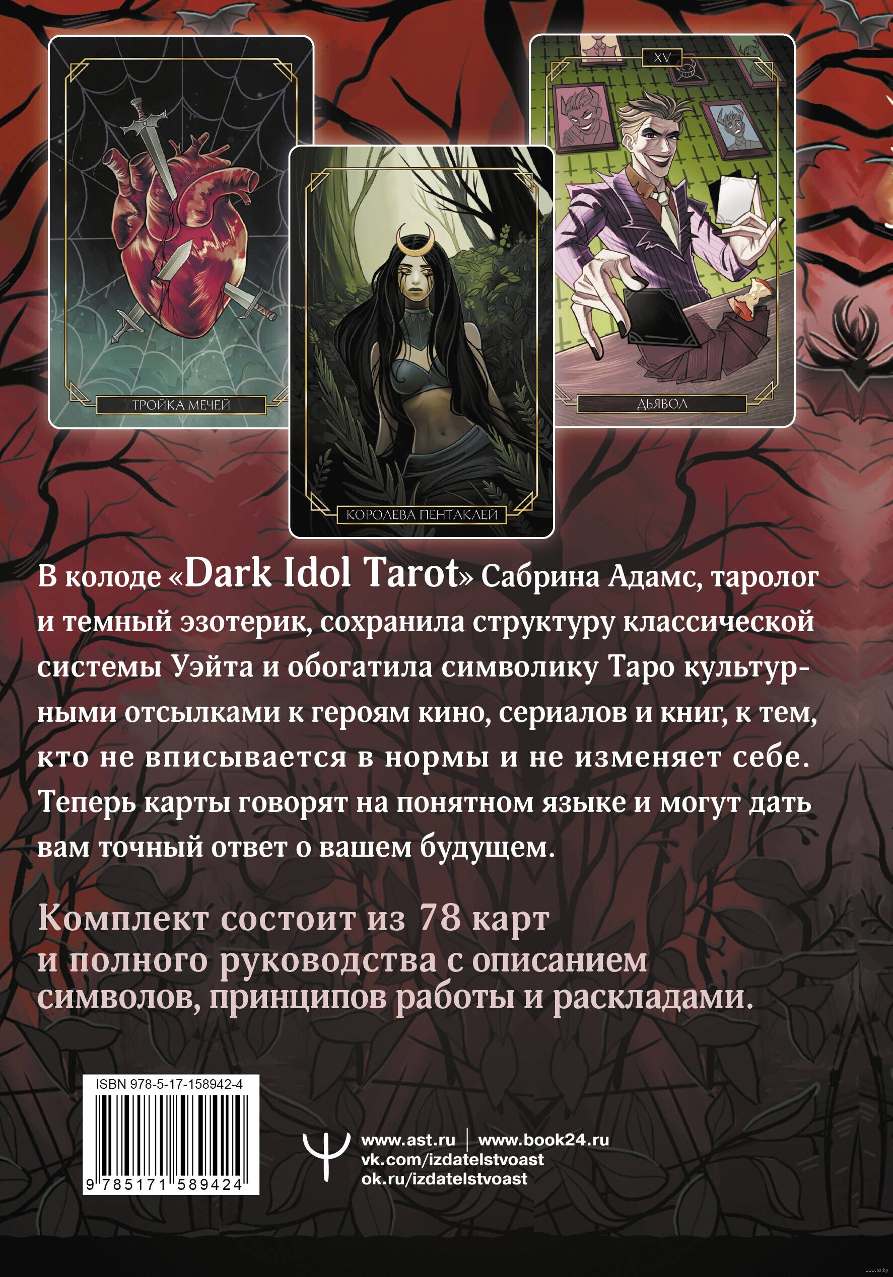 Карты "Dark Idol Tarot. Таро темных историй" – бунтарское Таро, которое говорит на понятном языке. В основе – классическая система Уэйта, которая выражена через образы популярной культуры. Колода пропитана духом свободы, творчества и бунтарства. Вы получите точные ответы на свои вопросы на ярком, но понятном языке.