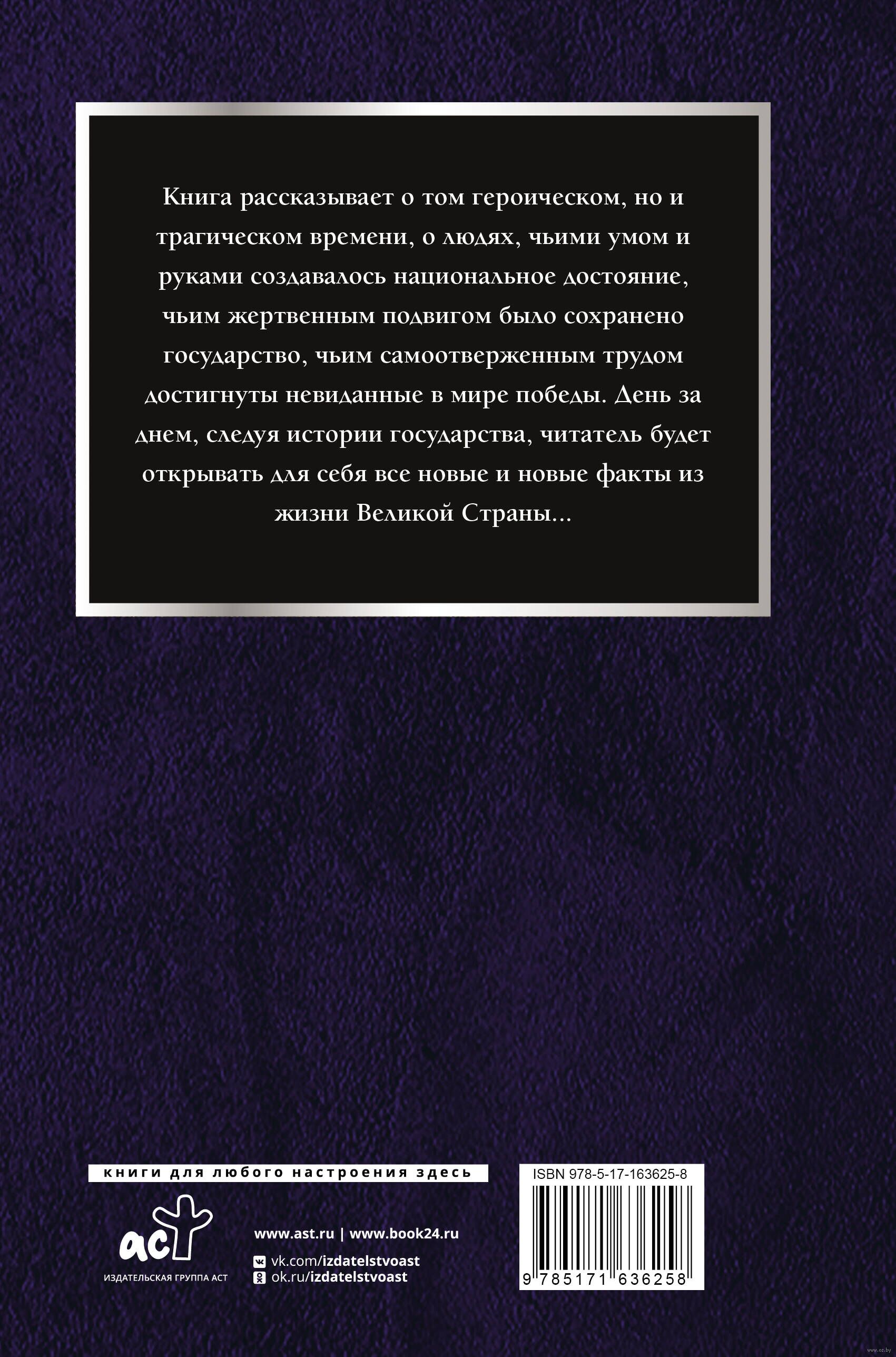 Книга рассказывает о том героическом, но и трагическом времени, о людях, чьими умом и руками создавалось национальное достояние, чьим жертвенным подвигом было сохранено государство, чьим самоотверженным трудом достигнуты невиданные в мире победы. День за днем, следуя истории государства, читатель будет открывать для себя все новые и новые факты из жизни Великой Cтраны...