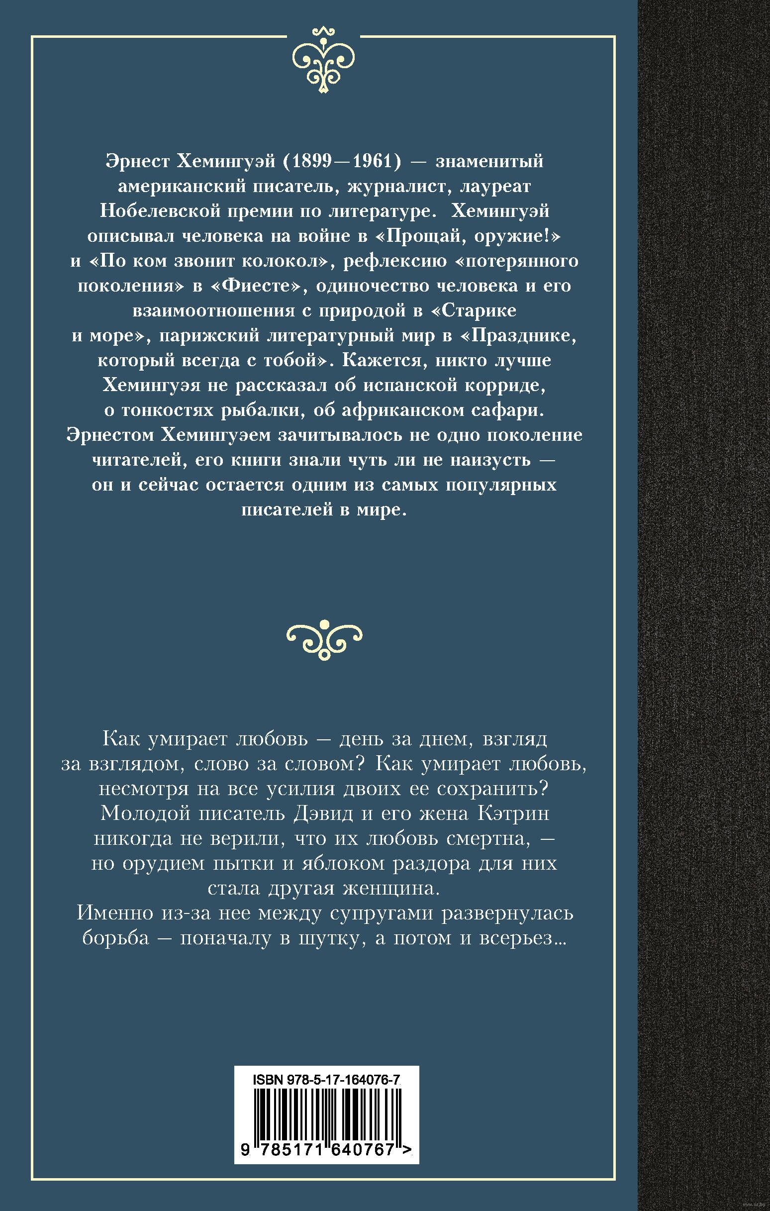 Молодой писатель Дэвид и его жена Кэтрин никогда не верили, что их любовь смертна, – но орудием пытки и яблоком раздора для них стала другая женщина.