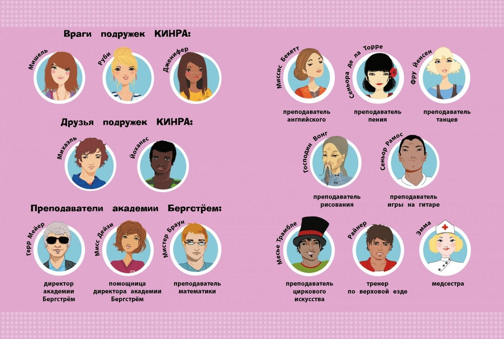 КИНРА – название тайного клуба подруг, оно составлено из первых букв имён пяти девушек: Кумико, Идалины, Наимы, Раджани и Алекс. Девочки приехали в академию Бергстрём из разных стран. Им предстоит развивать свои таланты, совершенствовать своё мастерство, а ещё каждой из них нужно будет научиться понимать своих подруг и уважительно относиться к традициям и культуре стран, из которых они приехали. И конечно же, подружек КИНРА ждут захватывающие приключения! Вот и наступил долгожданный день – первый день учёбы в Международной академии Бергстрём! В эту академию приглашают только самых талантливых ребят со всего мира. Будущие подружки КИНРА тоже приехали сюда из Японии, Испании, Америки, Индии и Австралии. Давайте знакомиться!