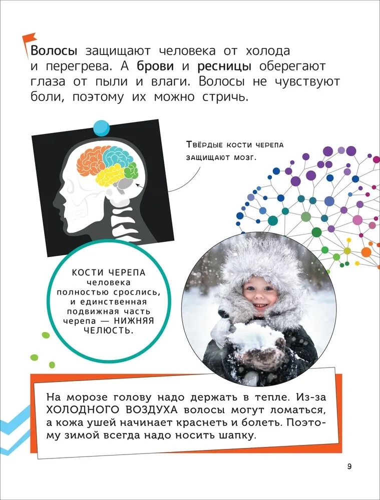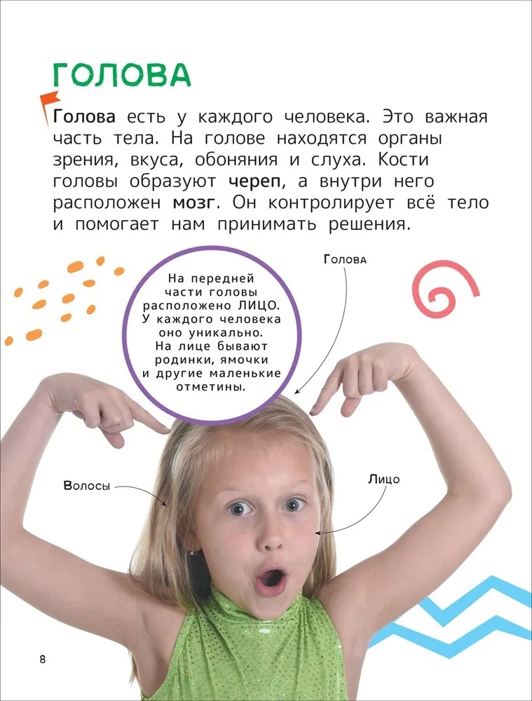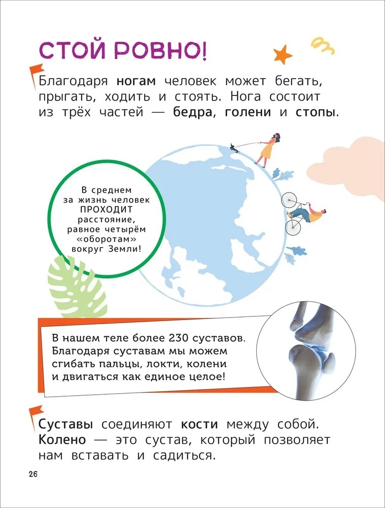 Книга поможет детям лучше понять свое собственное тело и научиться заботиться о нем. Маленькие читатели узнают, где находится самая маленькая кость, почему у людей появляется аллергия и как работают вакцины. Энциклопедия предназначена для совместного чтения родителей и детей. Тексты, набранные крупно и маркированные флажком, читает ребенок, а тексты на прямоугольных и крупных плашках – взрослый.