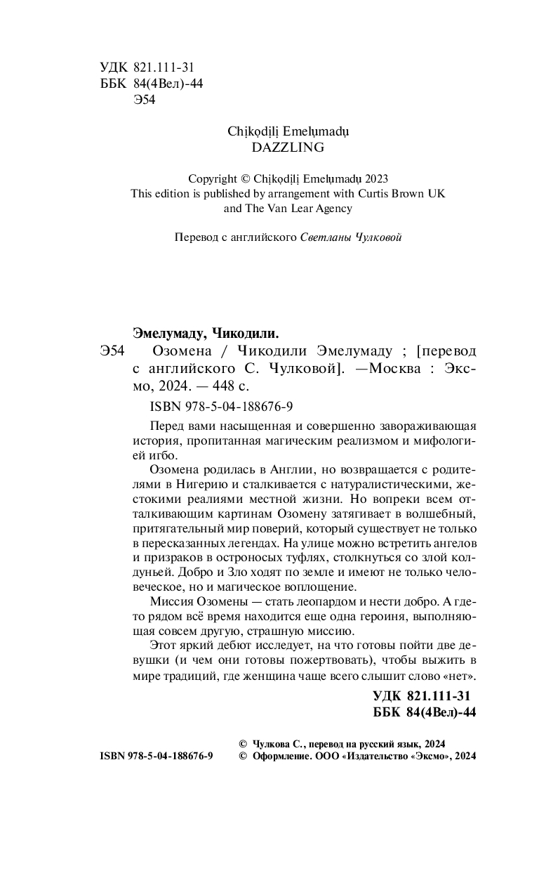 Перед вами насыщенная и совершенно завораживающая история, пропитанная магическим реализмом и мифологией игбо.