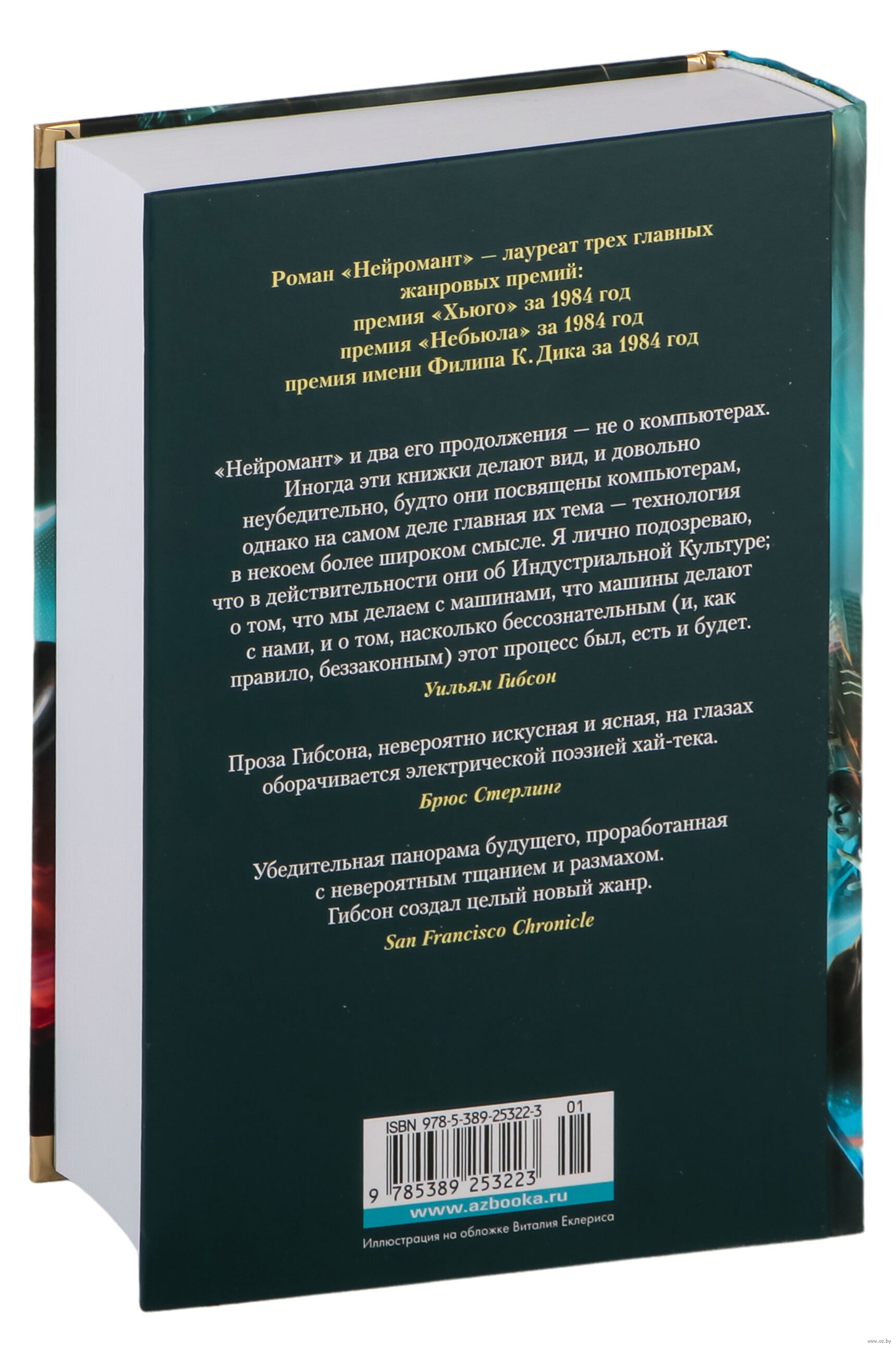 "Нейромант" – это классический дебют жанрового революционера, которому оказались тесны рамки любого жанра. Это книга, определившая лицо современной литературы на десятилетия вперед, собравшая все главные жанровые награды ("Хьюго", "Небьюла", премия имени Филипа Дика) и ставшая международным бестселлером. Далее последовали два продолжения, "Граф Ноль" и "Мона Лиза овердрайв", составившие вместе с "Нейромантом" трилогию "Киберпространство". Трилогия стала краеугольным камнем киберпанка – стиля и культурного феномена. Будущее здесь – это мир высоких технологий и биоинженерии, глобальных компьютерных сетей и всемогущих транснациональных корпораций, мир жестокий и беспощадный. Здесь хакер-виртуоз и отчаянная девушка-самурай должны выполнить таинственную миссию, запрограммированную десятилетия назад в неведомых глубинах искусственного разума. Здесь японская мафия исповедует идеалы древнего самурайского кодекса, виртуальный мир населен персонажами вудуистского пантеона, а девушка, умеющая входить в киберпространство без компьютера, становится для своего поколения богиней...
