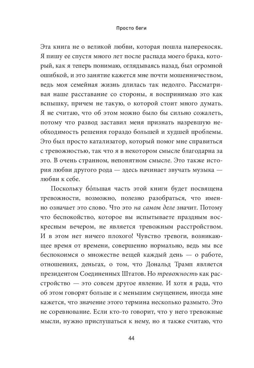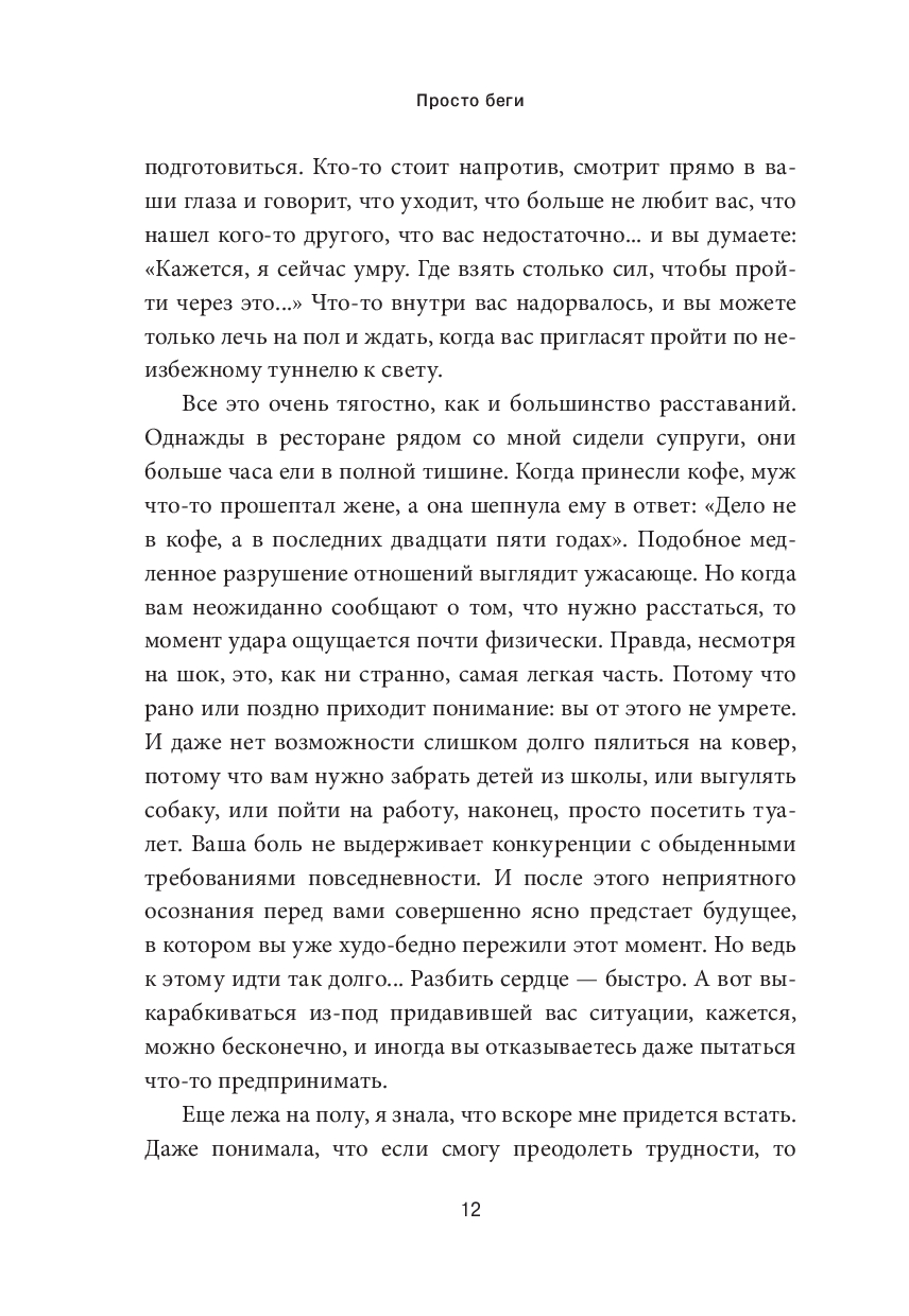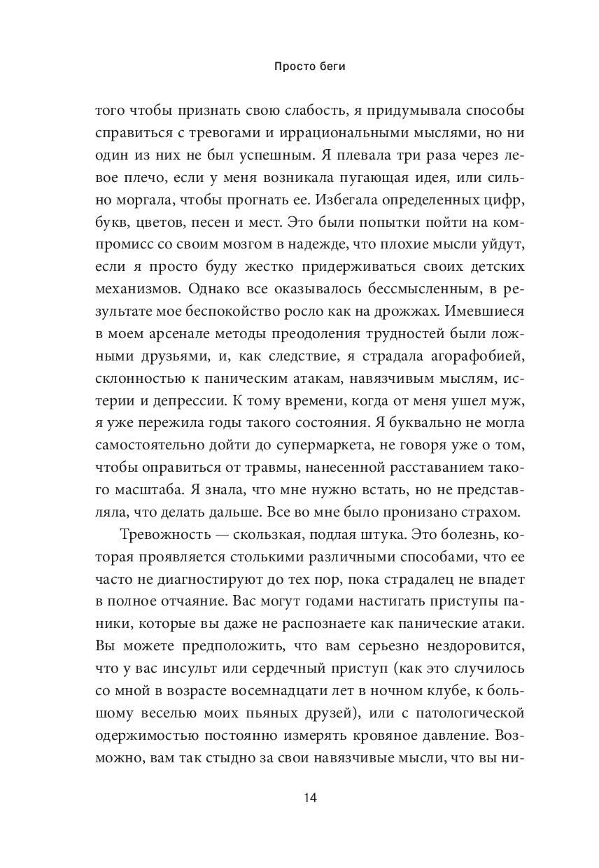 В своей искренней книге Белла с блестящим чувством юмора описывает, как использовала бег для борьбы с тревогой и депрессией, не жертвуя, однако, главными увлечениями: вином, сигаретами и мороженым. Эта забавная, трогательная и мотивирующая история заставит вас сказать своим проблемам: "Просто бегите", – и перенаправить жизнь в нужное русло – сколь бы маленькими ни казались ваши первые шаги.