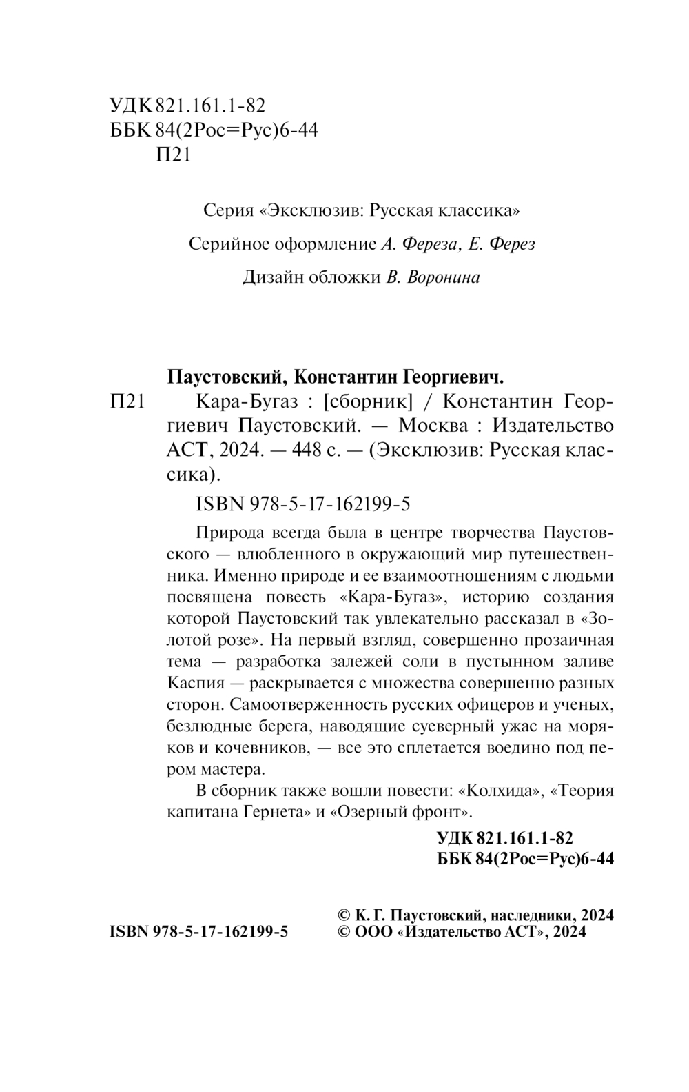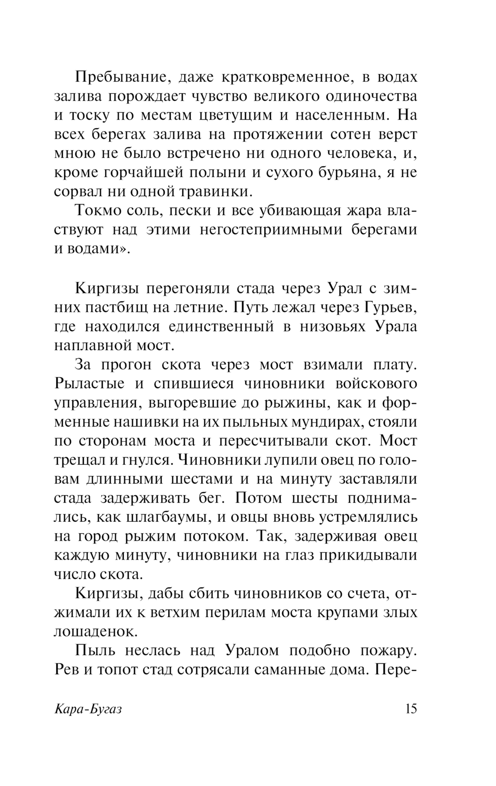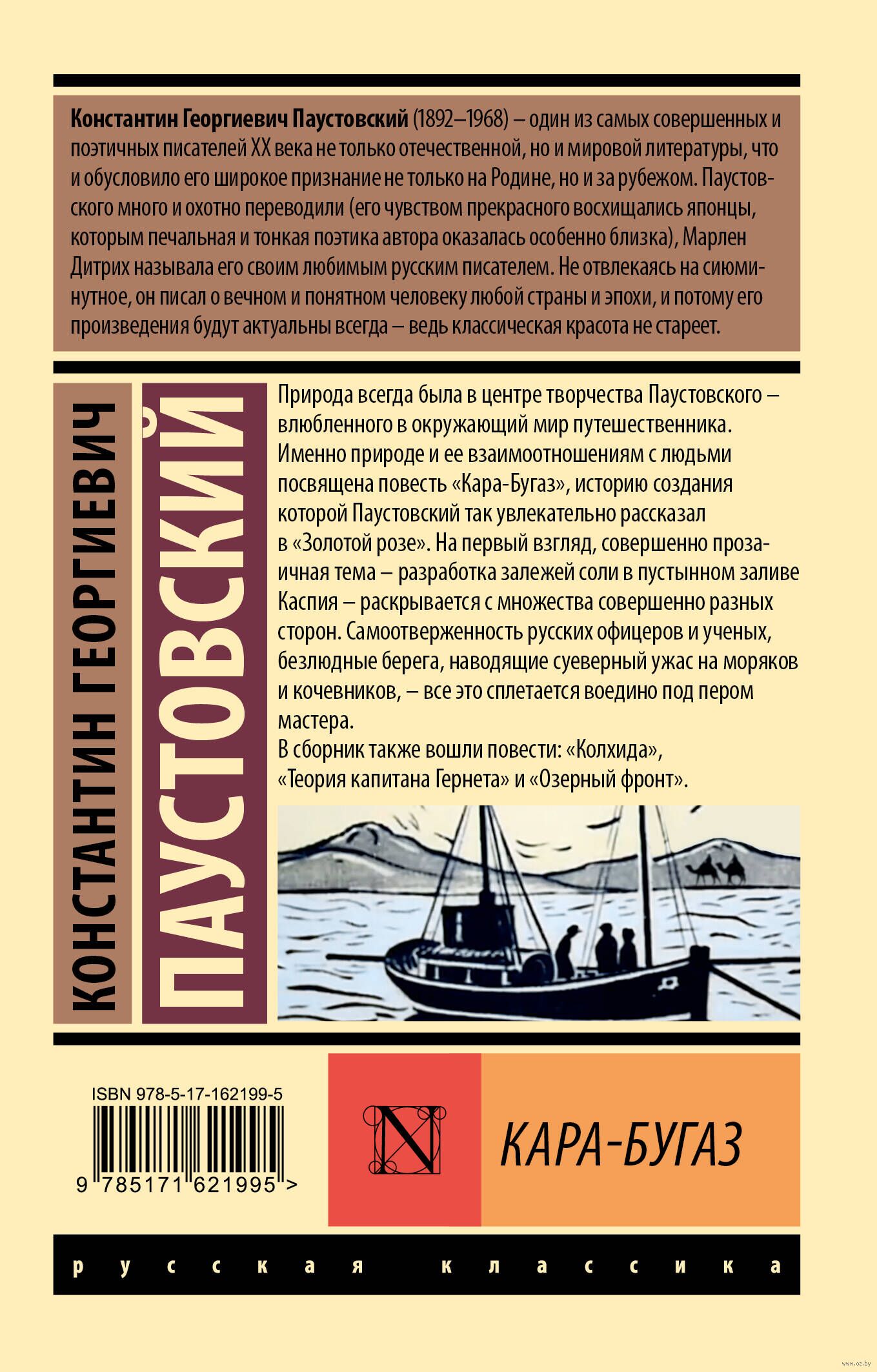 Природа всегда была в центре творчества Паустовского – влюбленного в окружающий мир путешественника. Именно природе и ее взаимоотношениям с людьми посвящена повесть "Кара-Бугаз", историю создания которой Паустовский так увлекательно рассказал в "Золотой розе". На первый взгляд, совершенно прозаичная тема – разработка залежей соли в пустынном заливе Каспия – раскрывается с множества совершенно разных сторон. Самоотверженность русских офицеров и ученых, безлюдные берега, наводящие суеверный ужас на моряков и кочевников, – все это сплетается воедино под пером мастера.