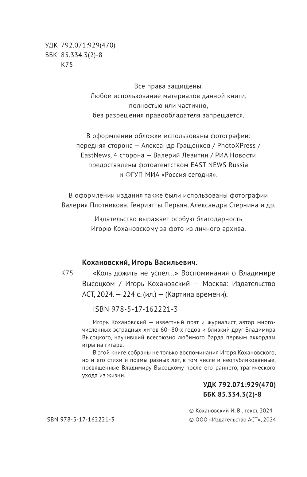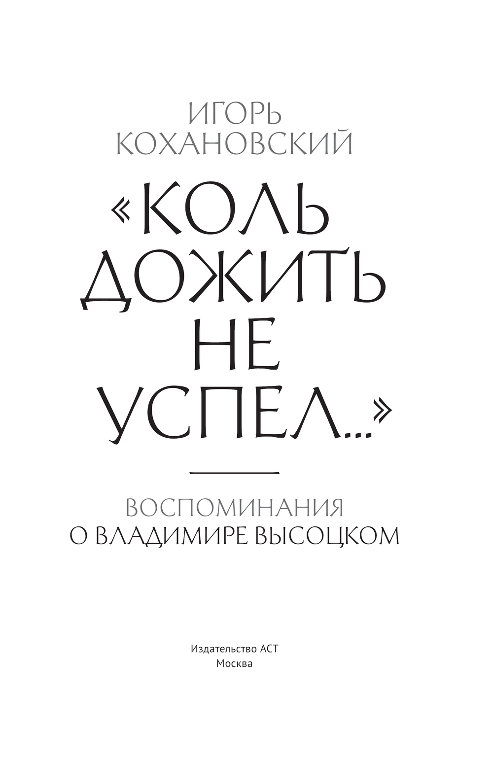 В этой книге собраны не только воспоминания Игоря Кохановского, но и его стихи и поэмы разных лет, в том числе и неопубликованные, посвященные Владимиру Высоцкому после его раннего, трагического ухода из жизни.