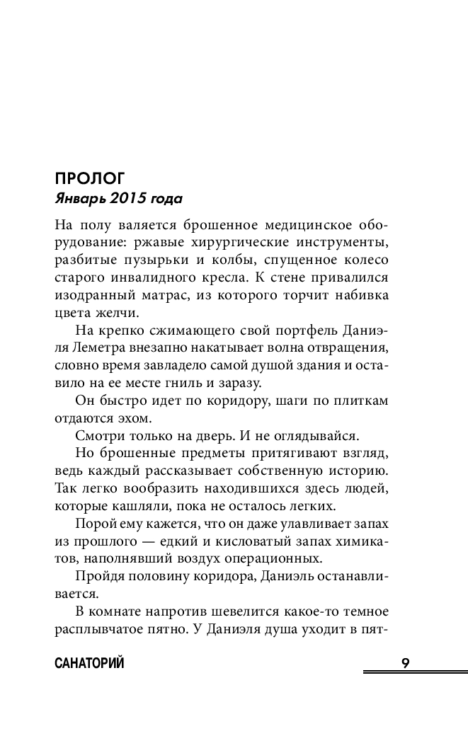 Когда невеста брата бесследно исчезает, Элин вынуждена взять дело в свои руки. Она единственная может разобраться в происходящем и раскрыть страшную тайну санатория...