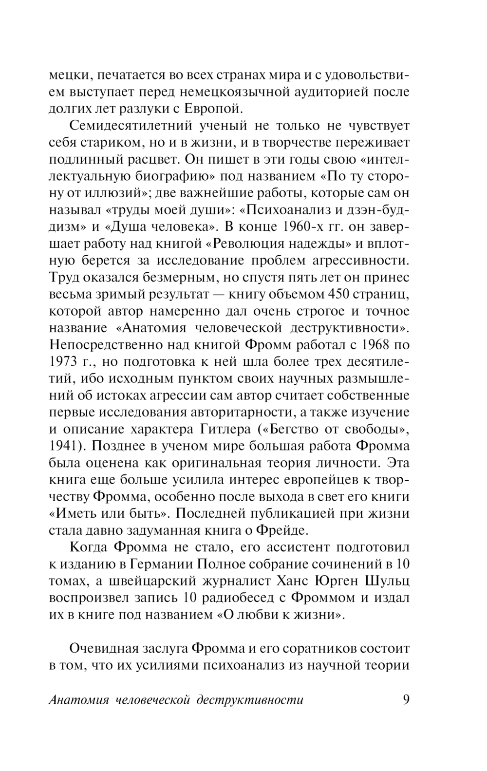 В своей книге "Анатомия человеческой деструктивности" Эрих Фромм сделал попытку философского переосмысления природы агрессивности и разрушительного начала в человеке, социуме и в истории, обобщив исследования по этому вопросу в самых разных областях науки, включая историю, палеонтологию, физиологию и психологию.
