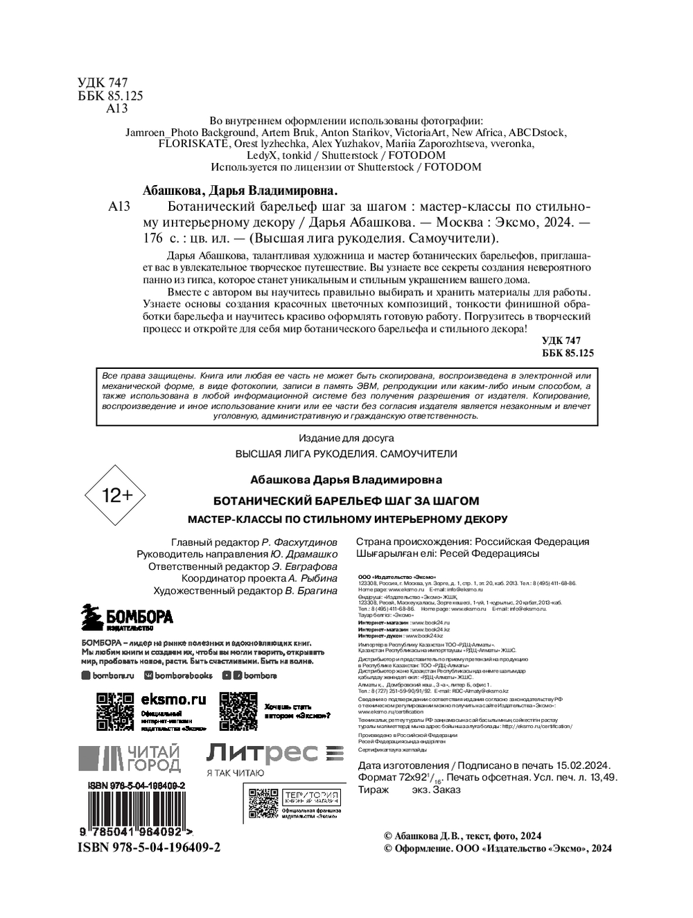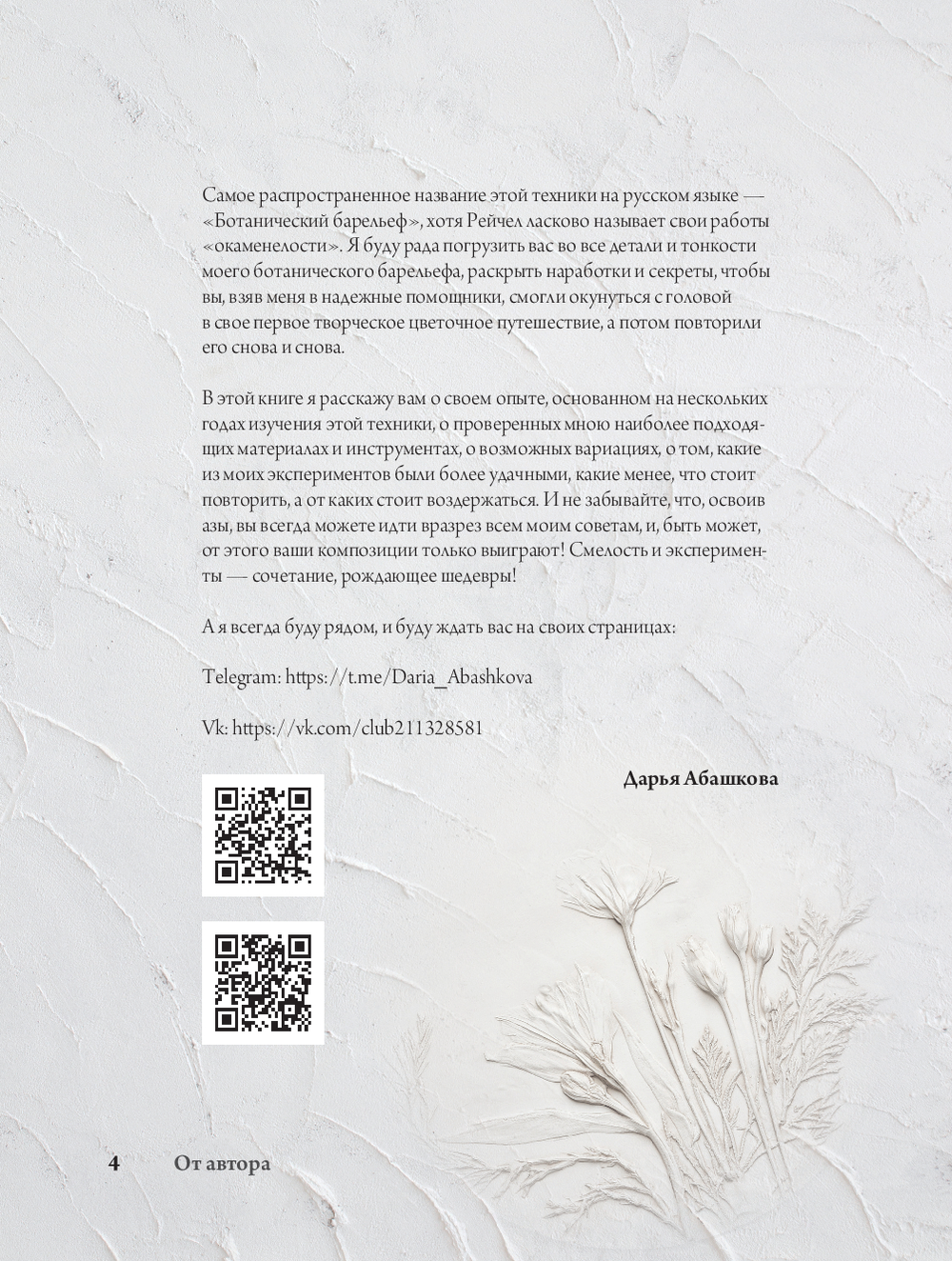 Вместе с автором вы научитесь правильно выбирать и хранить материалы для работы. Узнаете основы создания красочных цветочных композиций, тонкости финишной обработки барельефа и научитесь красиво оформлять готовую работу. Погрузитесь в творческий процесс и откройте для себя мир ботанического барельефа и стильного декора!
