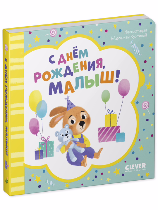 Книжка-открытка "С днем рождения, малыш!" создана для маленьких детских ручек: плотные картонные страницы не помнутся и не порвутся, а скругленные уголки не поранят пальчики.