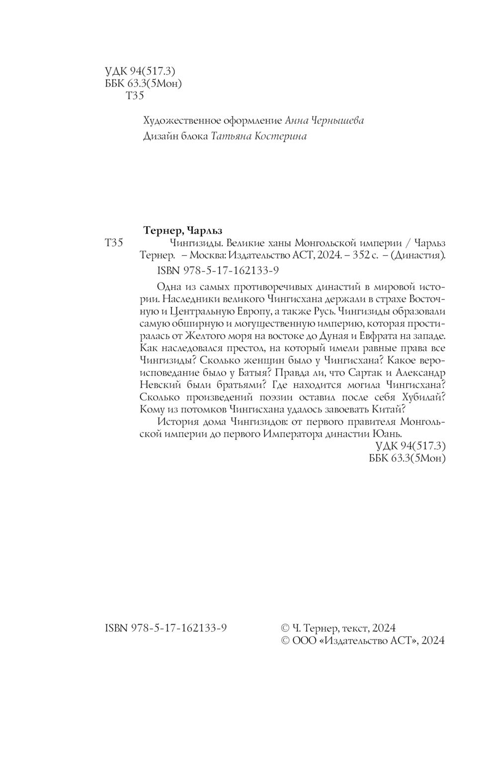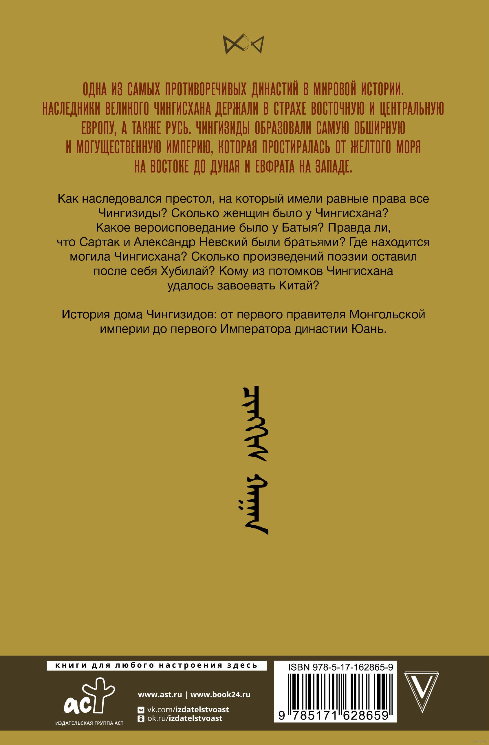 Одна из самых противоречивых династий в мировой истории. Наследники великого Чингисхана держали в страхе Восточную и Центральную Европу, а также Русь. Чингизиды образовали самую обширную и могущественную империю, которая простиралась от Желтого моря на востоке до Дуная и Евфрата на западе. Как наследовался престол, на который имели равные права все Чингизиды? Сколько женщин было у Чингисхана? Какое вероисповедание было у Батыя? Правда ли, что Сартак и Александр Невский были братьями? Где находится могила Чингисхана? Сколько произведений поэзии оставил после себя Хубилай? Кому из потомков Чингисхана удалось завоевать Китай?