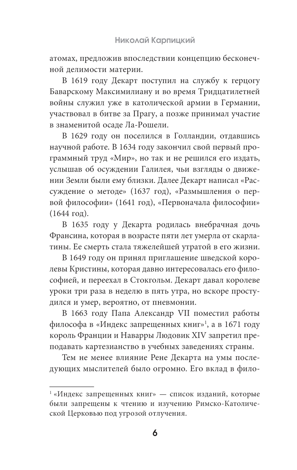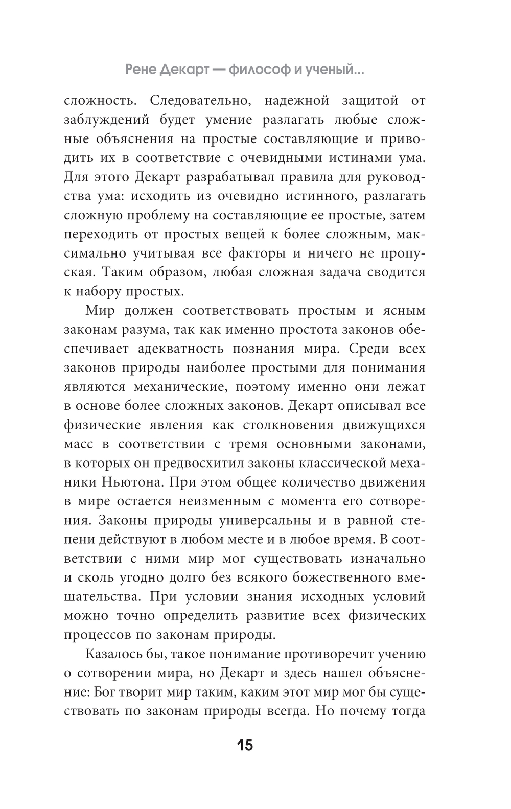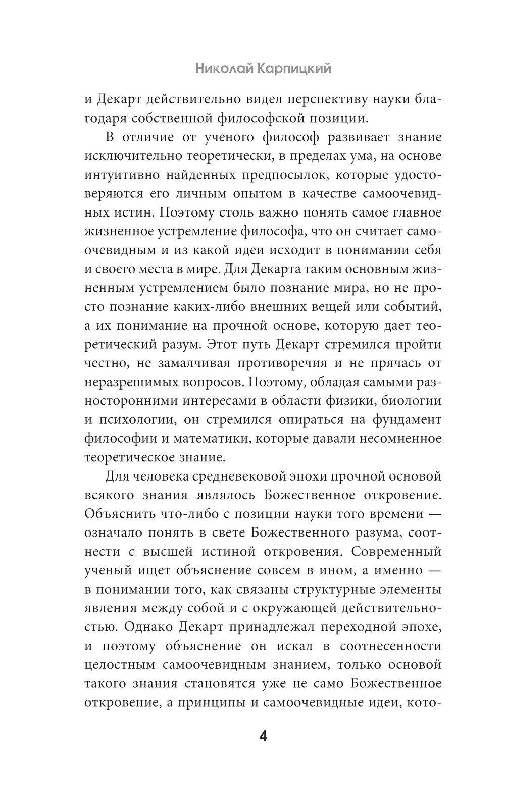 Рене Декарт – выдающийся математик, физик и физиолог. До сих пор мы используем созданную им математическую символику, а его система координат отражает интуитивное представление человека эпохи Нового времени о бесконечном пространстве. Но прежде всего Декарт – философ, предложивший метод радикального сомнения для решения вопроса о познании мира. В "Правилах для руководства ума" он пытается доказать, что результатом любого научного занятия является особое направление ума, и указывает способ достижения истинного знания. В трактате "Первоначала философии" Декарт пытается постичь знание как таковое, подвергая всё сомнению, и сформулировать законы физики.