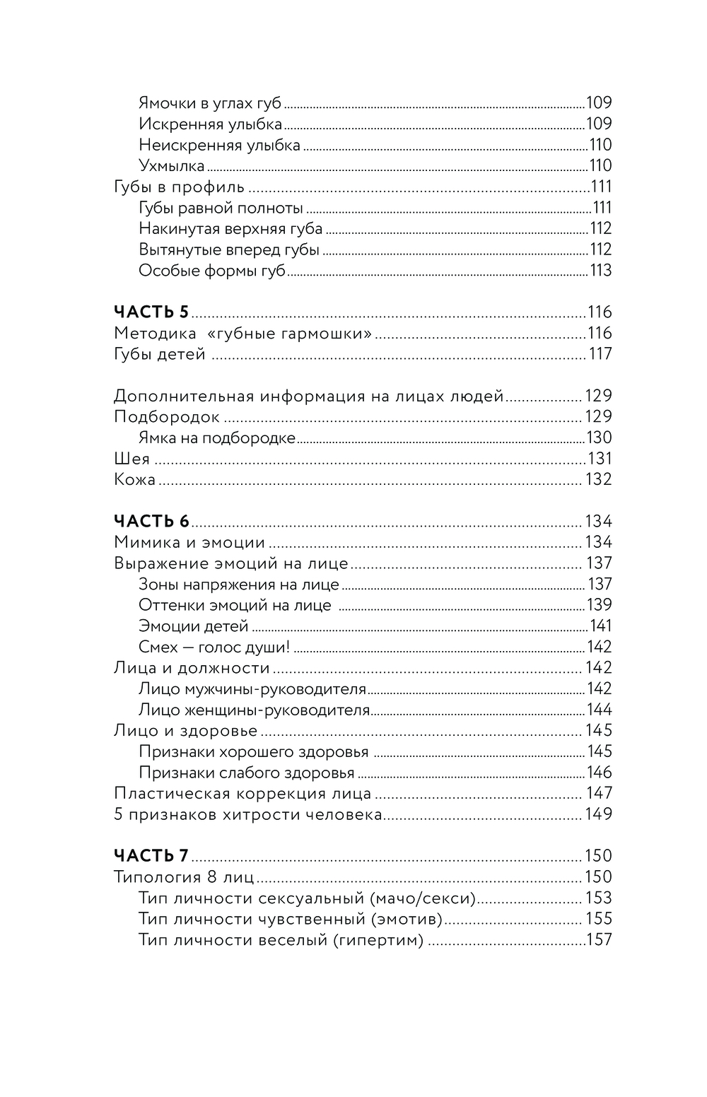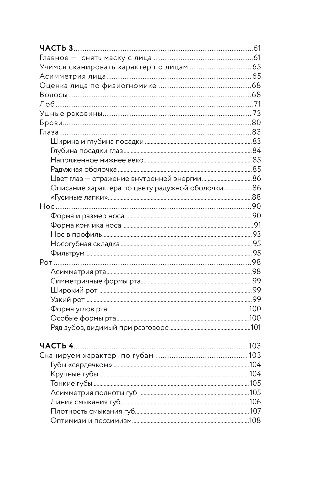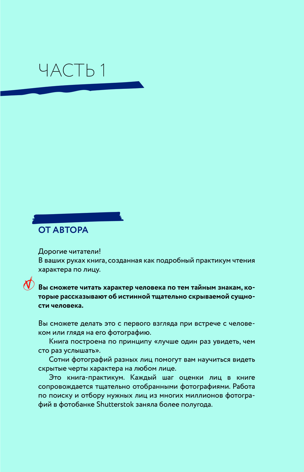 В ваших руках иллюстрированное издание, созданное как подробный практикум чтения характера по лицу. Вся информация в книге – уникальная авторская разработка, не повторяющая способы оценки лиц ни одной из ранее изданных книг по физиогномике. Книга для всех, кто хочет научиться определять особенности партнера или коллеги, руководителя или подчиненного или даже характер совершенно незнакомого человека по внешним признакам. Наука физиогномика позволяет читать эту книгу залпом, между строк. И кто освоит эту науку, будет обладать искусством "скорочтения по лицу" – сильнейшим тайным оружием!