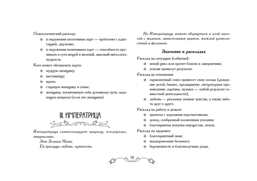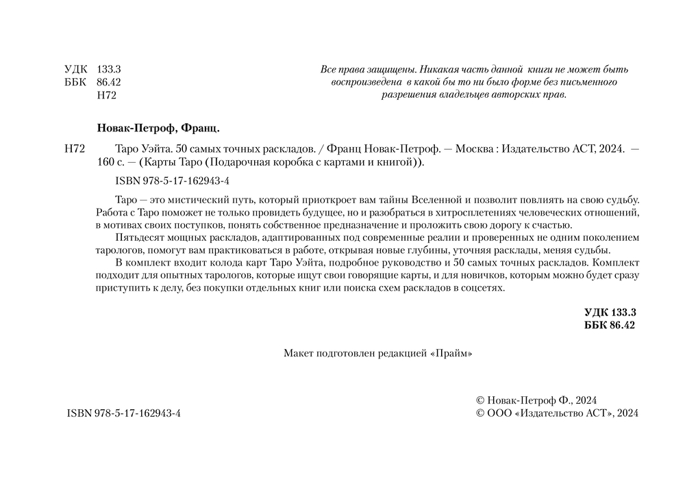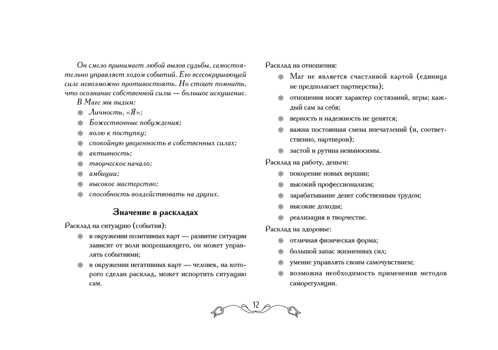 Таро – это мистический канал, открывающий тайны Вселенной. Владение техникой раскладов Таро позволит вам влиять на судьбу. Вы сможете не только провидеть будущее, но и разобраться в хитросплетениях человеческих отношений, в мотивах поступков. Вам откроется тайна предназначения и дорога к счастью. В комплект входит колода Таро Уэйта, подробное руководство и 50 самых точных раскладов. Комплект подходит для опытных тарологов, которым нужны говорящие карты, и для новичков, которые готовы окунуться в Таро здесь и сейчас. С этим комплектом вы сможете полноценно работать, не прибегая к дополнительным материалам из книг или соцсетей.