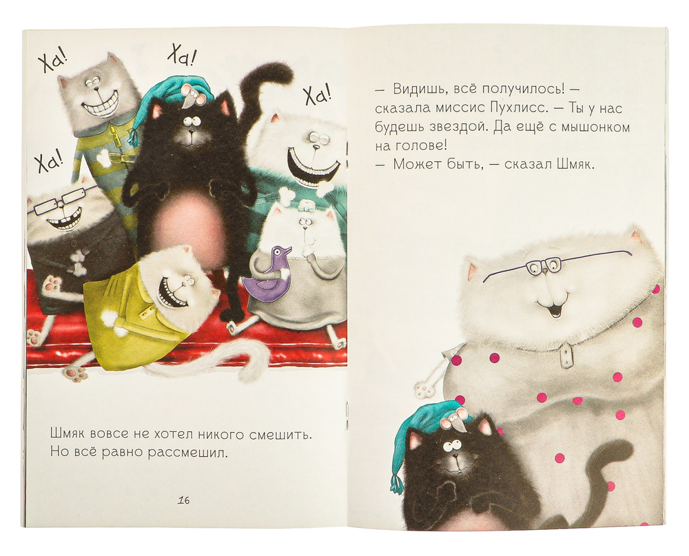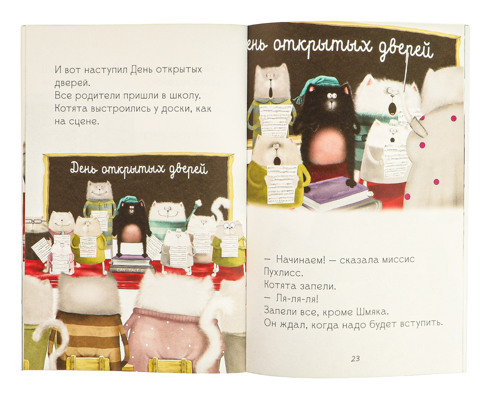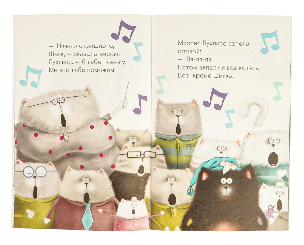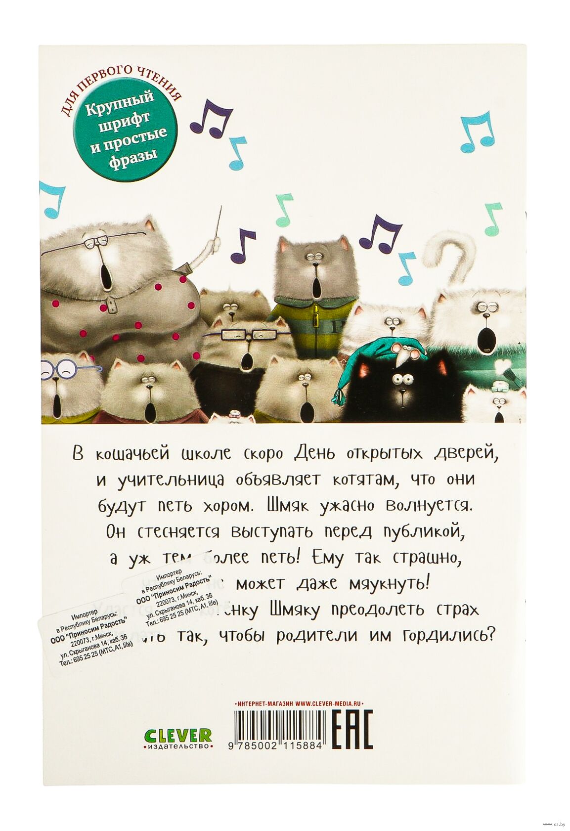 В кошачьей школе скоро День открытых дверей, и учительница объявляет котятам, что они будут петь хором. Шмяк ужасно волнуется. Он стесняется выступать перед публикой, а уж тем более петь! Ему так страшно, что он не может даже мяукнуть! Удастся ли котёнку Шмяку преодолеть страх и сделать так, чтобы родители им гордились?