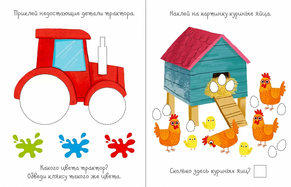 Более 230 наклеек, красочные иллюстрации и интересные задания надолго захватят внимание вашего малыша. Он будет заниматься с удовольствием и узнает, кто живёт в деревне, что растёт на грядках.
