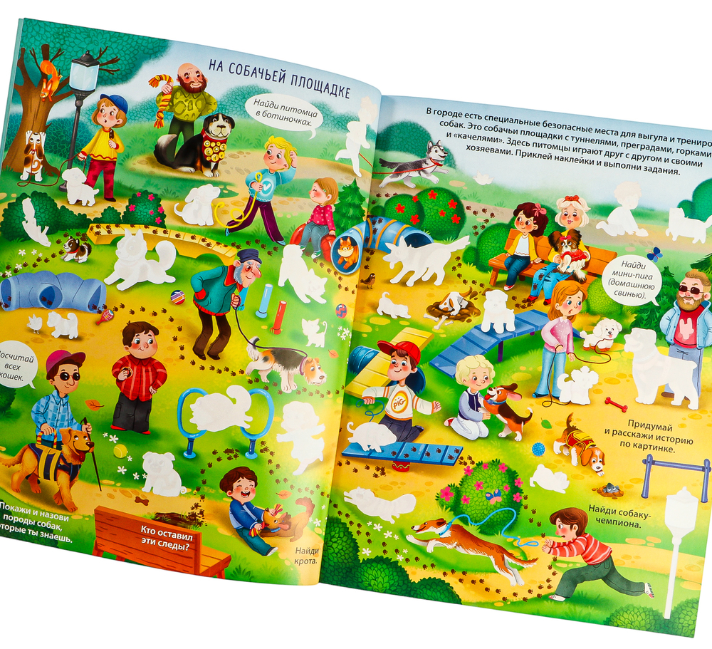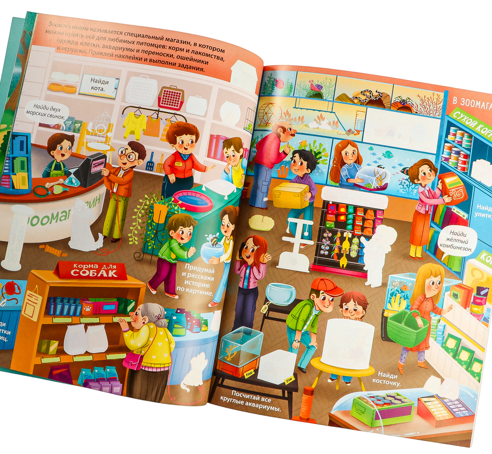 Вы держите в руках не просто книгу, а настоящий виммельбух с наклейками. Благодаря ярким иллюстрациям и занимательным заданиям эта книга надолго увлечёт вашего ребёнка и не даст ему скучать ни минуты.
