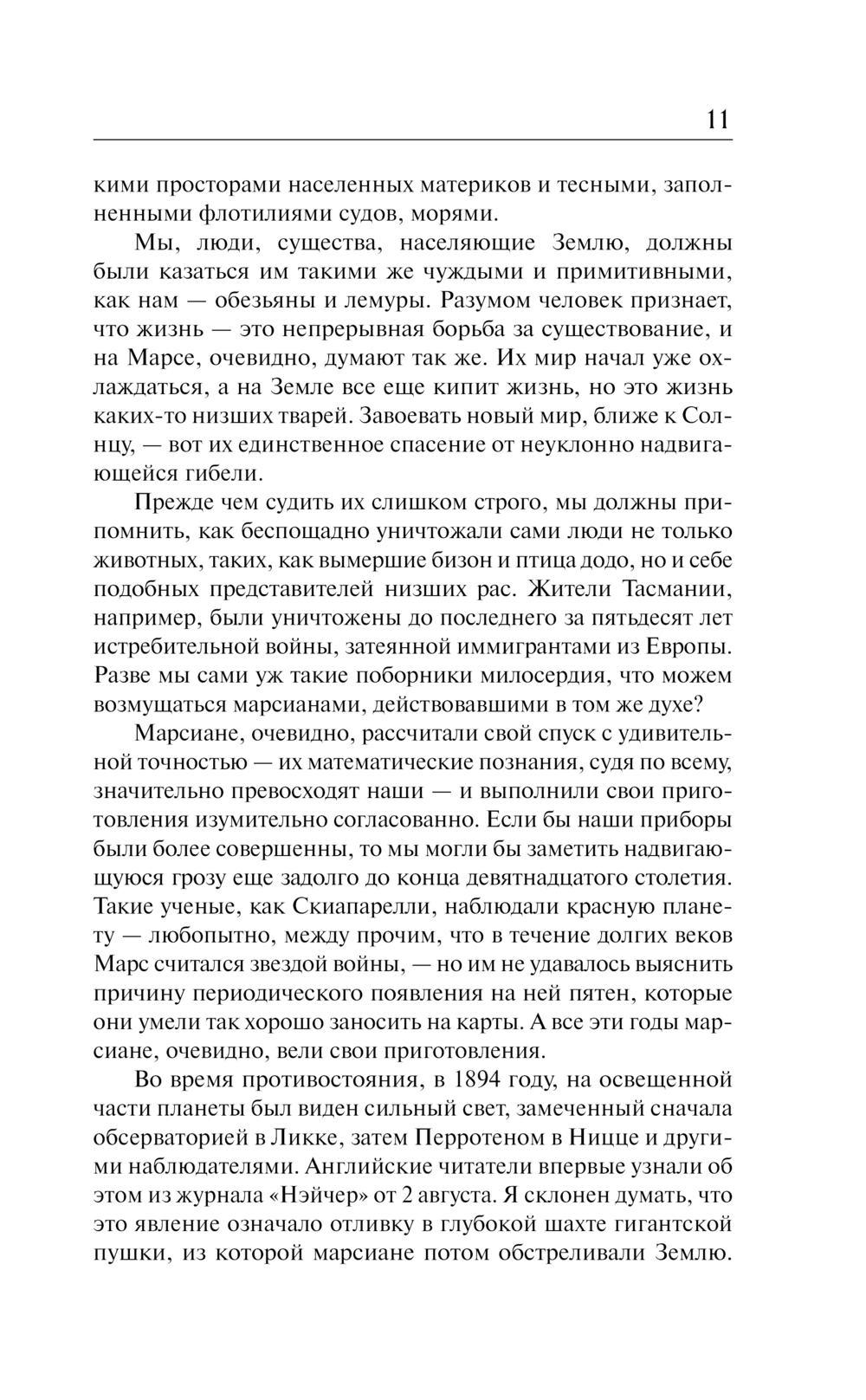 "Война миров". Одно из самых масштабных полотен за всю историю мировой фантастики, не имеющее аналогов в литературе, предельно реалистичная картина конфронтации человечества с неведомым. Нападение марсиан на Землю показано как масштабный катаклизм, поставивший сотни тысяч обычных граждан перед фактом крушения прежнего патриархального мира, вторжения страшного будущего, полной дегуманизации людской психологии.
