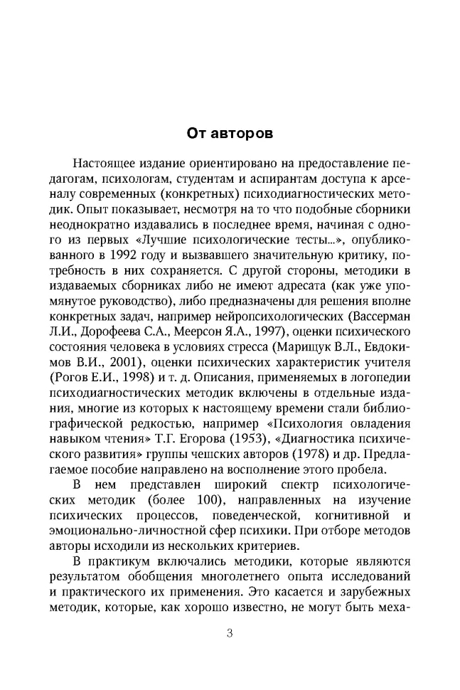 В книге представлен широкий спектр психодиагностических методик (более 100), направленных на изучение психических процессов, поведенческой, когнитивной и эмоционально-личностной сфер психики. При отборе предпочтение отдавалось методикам, которые являются результатом обобщения многолетнего опыта научных исследований и практического их применения.