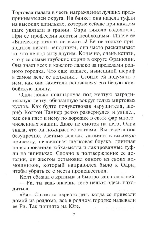 С юных лет Одри Андерсон хотела выйти замуж за одноклассника Колта Таннера. Но все планы перечеркнула школьная вечеринка, которую Одри проболела, а Колт, напившись, переспал с роковой красоткой, после сего был вынужден на ней жениться из-за ее беременности. Через несколько лет после рождения сына они развелись, но Одри так и не простила Колта, который стал шерифом...