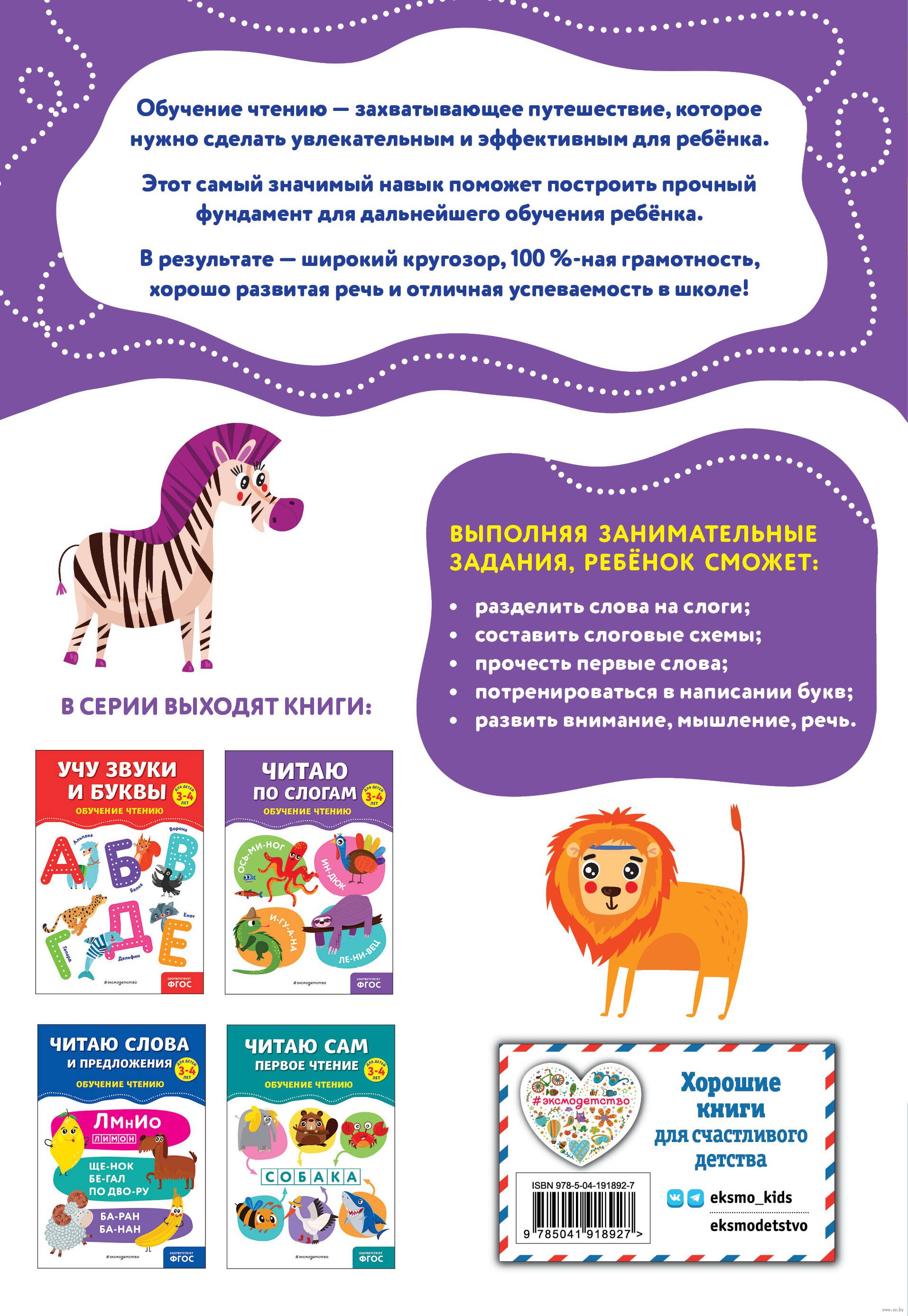 Благодаря этому пособию ребёнок быстро освоит и закрепит навык чтения. Выполняя задания, дошкольник будет соединять буквы в слоги, делить слова на слоги и писать их печатными буквами, читать по слогам и рисовать слоговые схемы, разовьёт внимание и память, мышление и связную речь, а также обогатит словарный запас и расширит кругозор. Адресовано старшим дошкольникам, их родителям и воспитателям.
