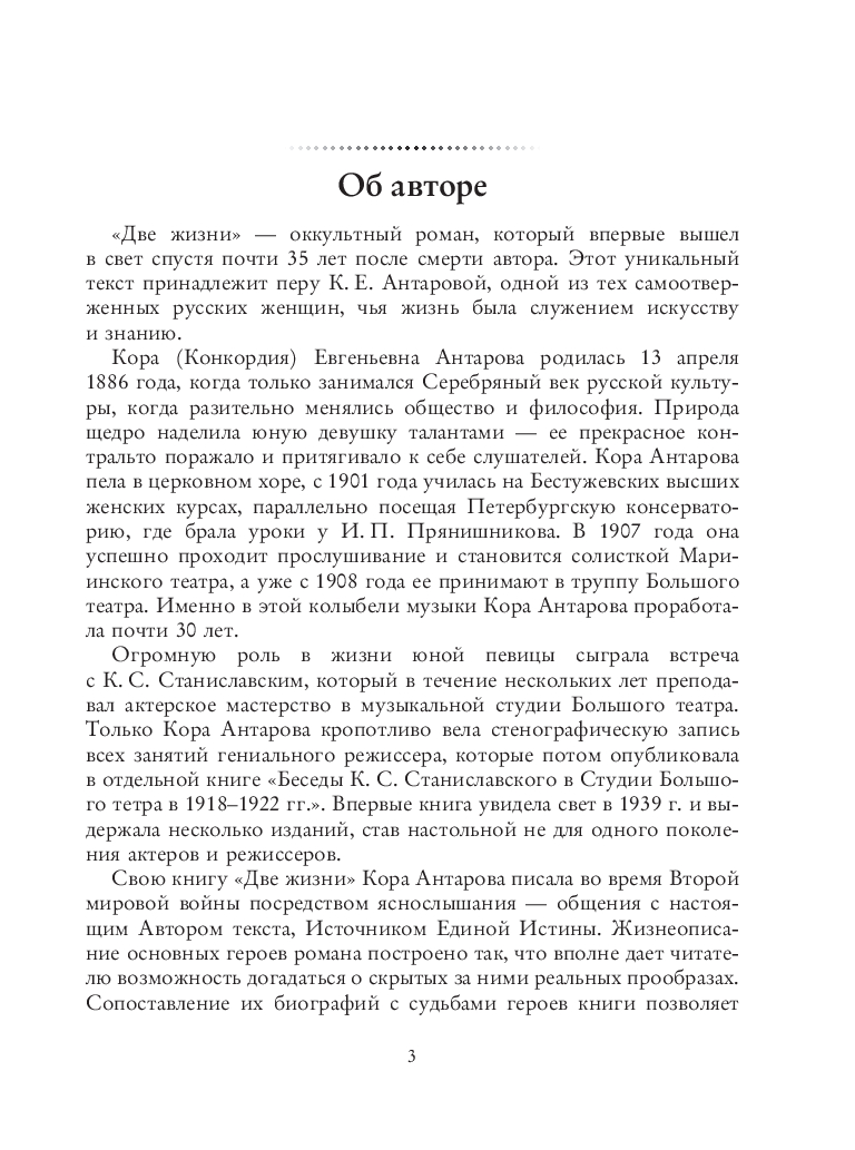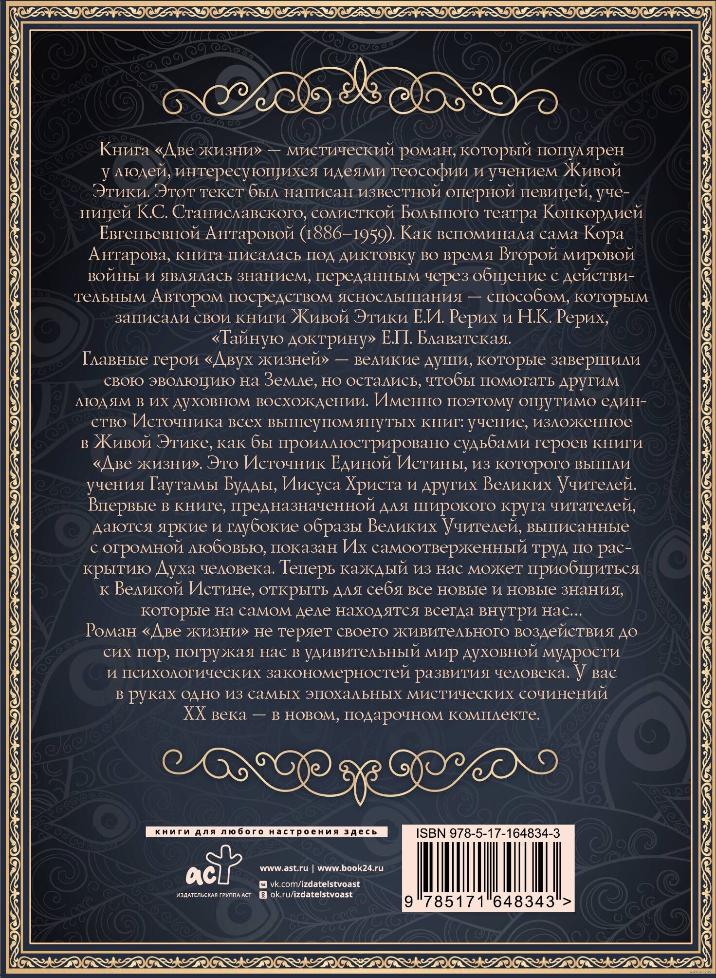 Книга "Две жизни" – мистический роман, который популярен у людей, интересующихся идеями Теософии и Учением Живой Этики. Этот текст был написан известной оперной певицей Конкордией Евгеньевной Антаровой (1886-1959) в годы Великой Отечественной войны и сегодня считается классикой эзотерической литературы. Главные герои "Двух жизней" – великие души, которые завершили свою эволюцию на Земле, но остались, чтобы помогать другим людям в их духовном восхождении. Теософское учение, изложенное в "Живой Этике", как бы проиллюстрировано судьбами героев книги "Две жизни".