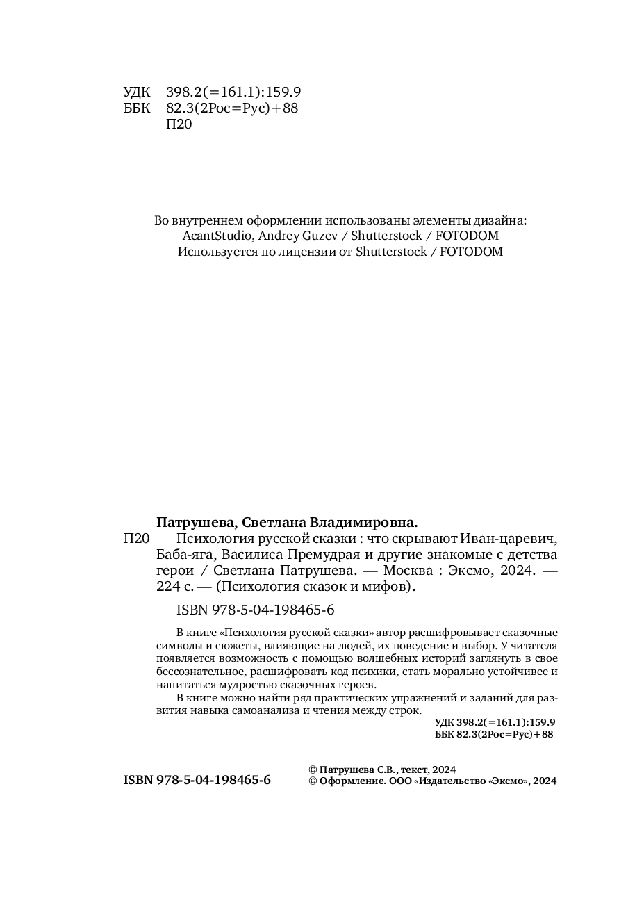 Эта книга – возможность под новым углом посмотреть на любимых с детства персонажей. В ней Светлана Патрушева, психолог и преподаватель психологии, рассказывает, как с помощью сказочных историй и мифов можно найти собственную идентичность, восполнить ресурс сил, преодолеть кризис и научиться читать культурный код.