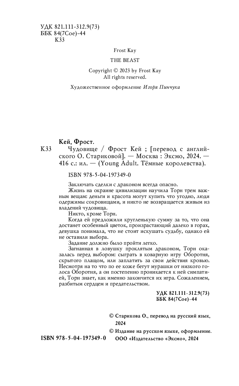 Задание должно было пройти легко. Загнанная в ловушку проклятым драконом, Торн оказалась перед выбором. Сыграть в коварную игру Оборотня, скрытого плащом, или заплатить за свои действия кровью. Несмотря на то что по ее коже бегут мурашки от низкого голоса Оборотня, а он постепенно проникается к ней симпатией, Торн знает, как именно закончится их игра. Сожалением, разбитым сердцем и предательством.