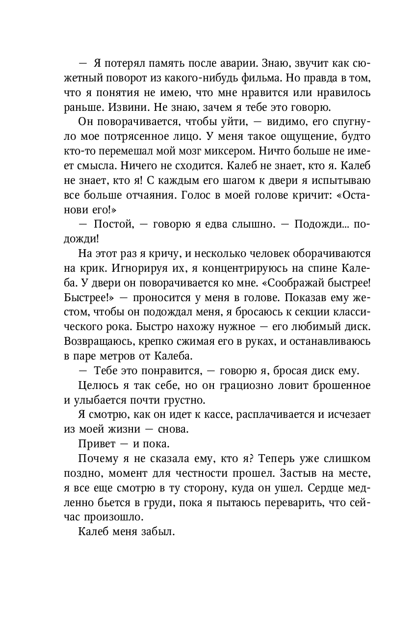 Когда три года спустя она случайно встречает его, то Калеб ее не узнает и не помнит об их романе. Оказывается, он попал в аварию и потерял память. Оливия решает воспользоваться вторым шансом, подаренным ей судьбой, и заново завоевать сердце бывшего.