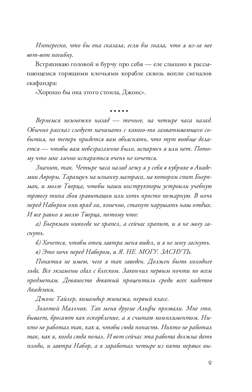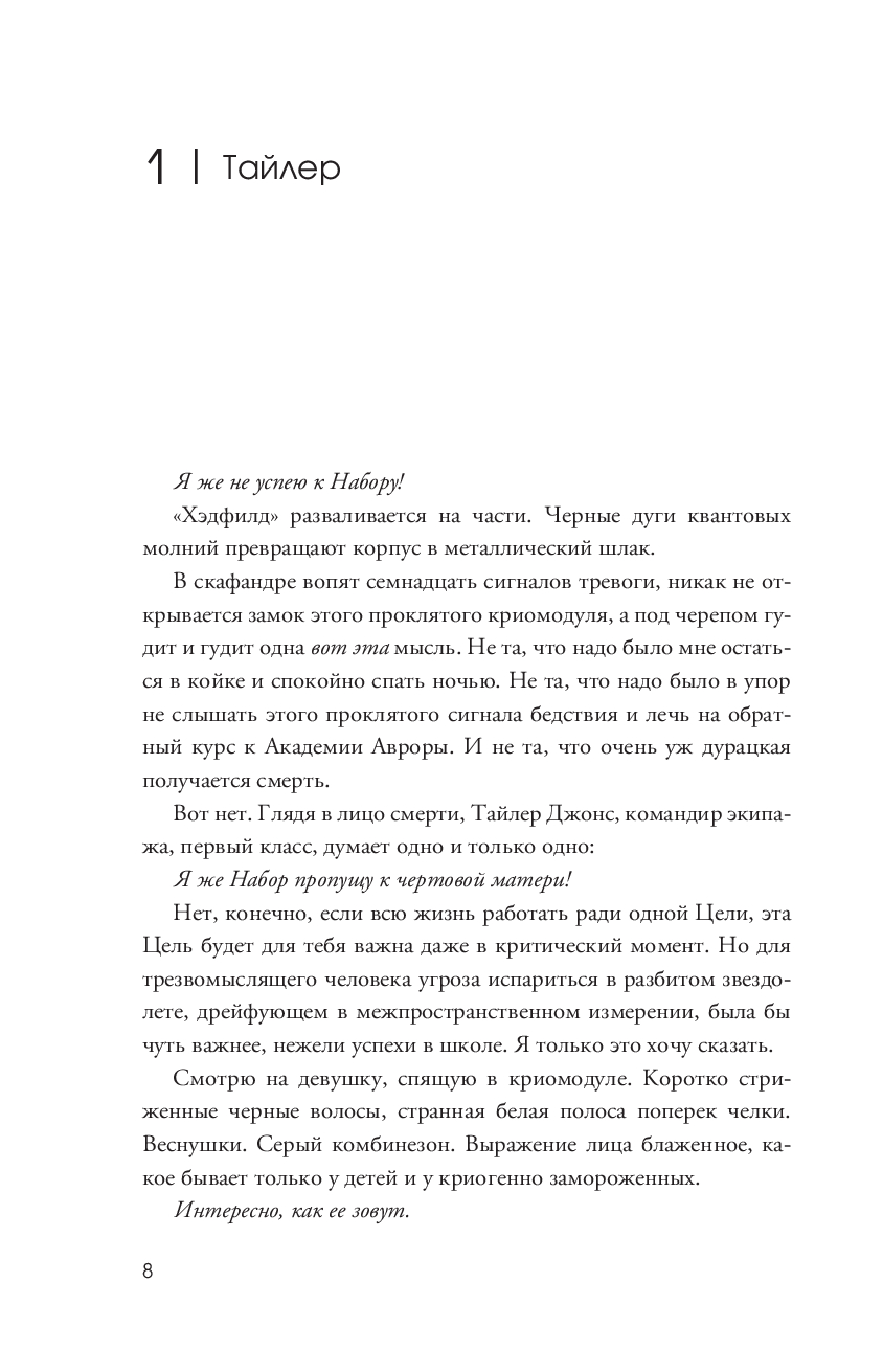 На дворе 2380 год, и выпускники Академии Авроры получают свои первые задания. Звездный ученик Тайлер Джонс готов набрать команду своей мечты. Однако его глупый героизм приводит к тому, что теперь его отряд состоит из аутсайдеров, которых никто бы не взял. Дерзкий дипломат с черным поясом в сарказме. Ученый-социопат, любящий стрелять в своих соседей по комнате. Технический гений с самым большим чипом в галактике на плече. Инопланетный воин, не умеющий справляться с собственным гневом. Пилот-сорванец, которому Тайлер совершенно не нравится. Но самая большая проблема Джонса – это Аврора Цзе-Линь О'Мэлли, девушка, которую он спас. Запертая в криосне на два столетия, Аврора – девушка вне времени, возможный катализатор, который начнет войну, назревающую миллионы лет. А команда Тайлера может стать последней надеждой для всей галактики.
