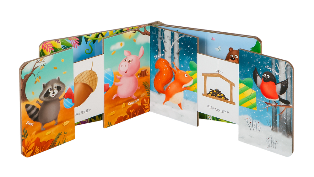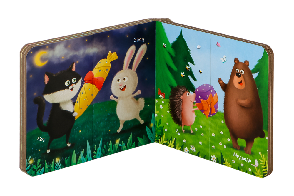 Раздвижная книжка-картонка познакомит вашего малыша с разными животными и тем, что они любят. Внимание и воображение помогут ребёнку догадаться, какой подарок спрятан внутри красивой упаковки.