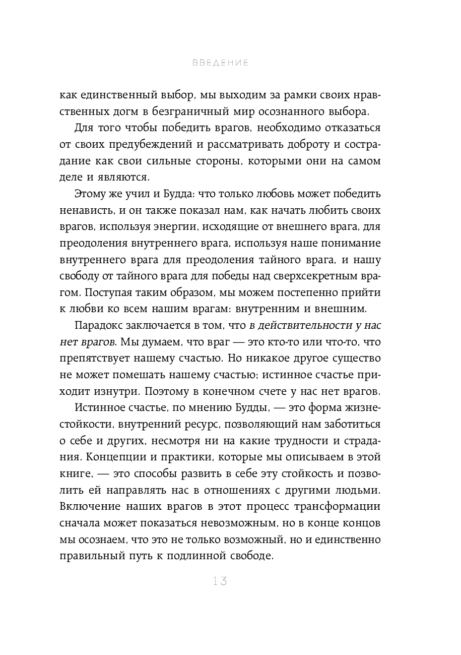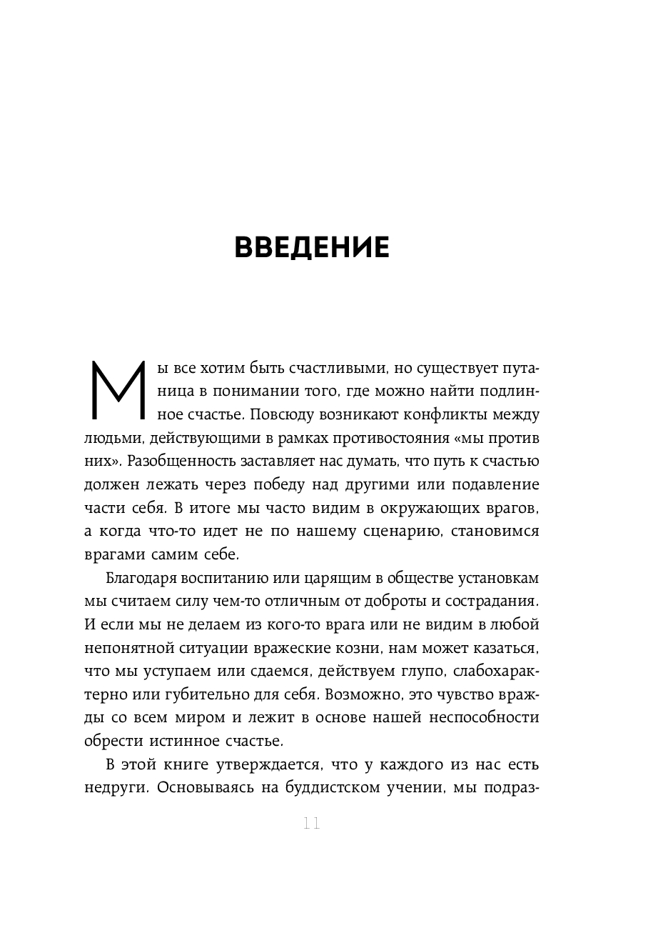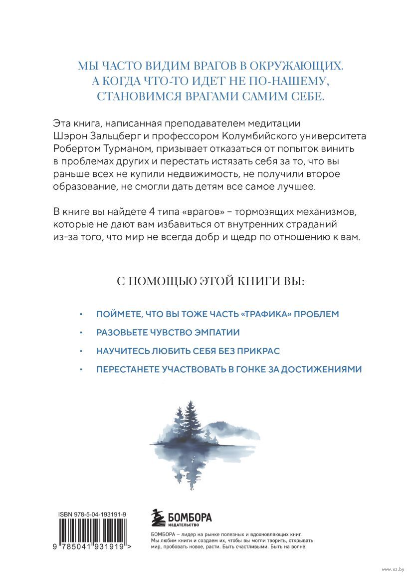 Мы часто видим врагов в окружающих. А когда что-то идет не по нашему, становимся врагами самим себе. Эта книга, написанная преподавателем медитации Шэрон Зальцберг и профессором колумбийского университета Робертом Турманом, призывает отказаться от попыток винить в проблемах других и перестать истязать себя за то, что вы раньше всех не купили недвижимость, не получили второе образование, не смогли дать детям все самое лучшее.