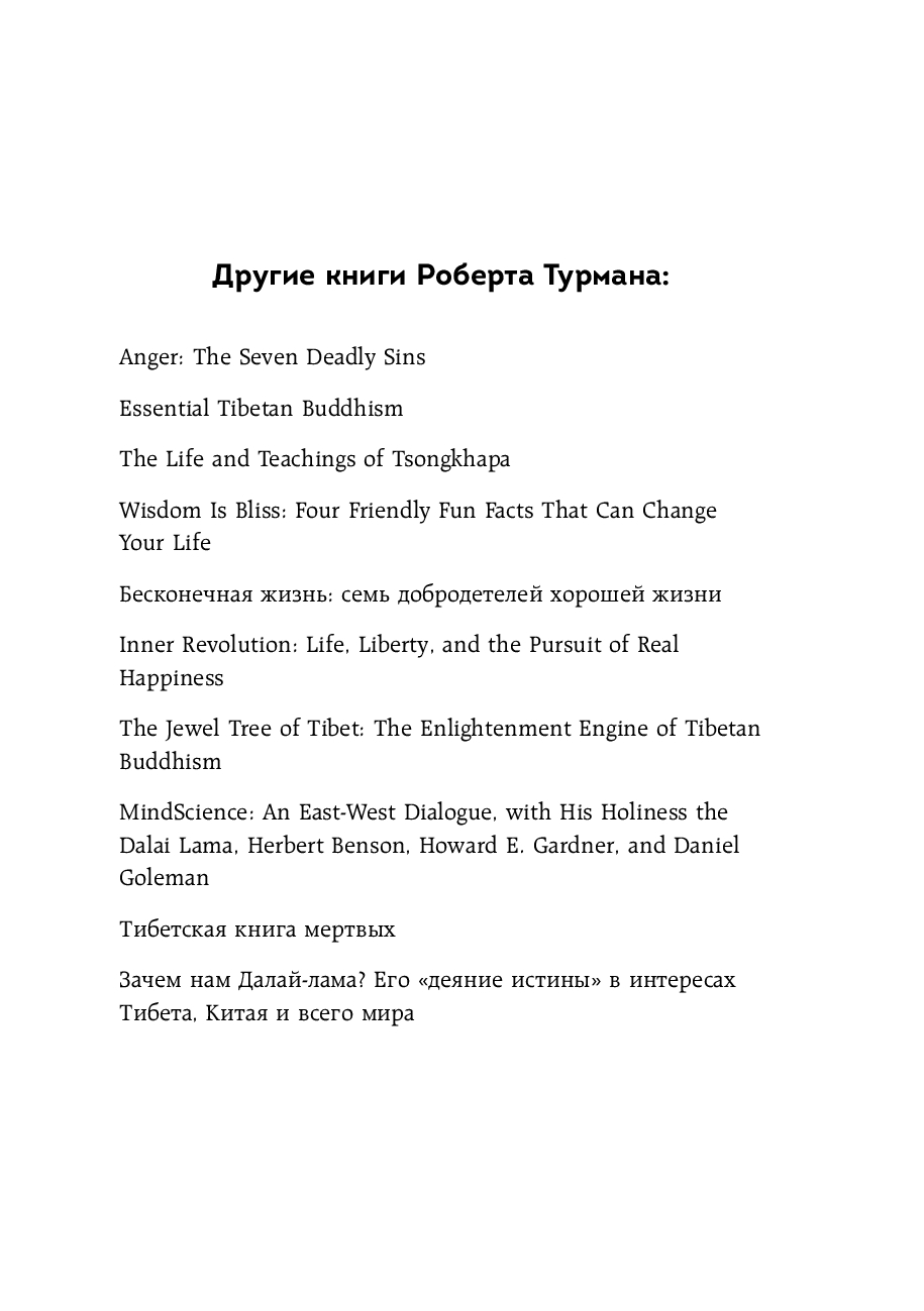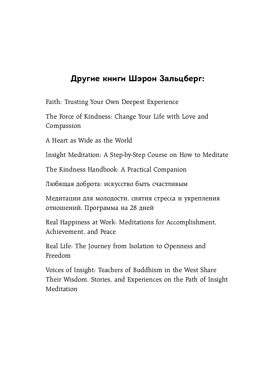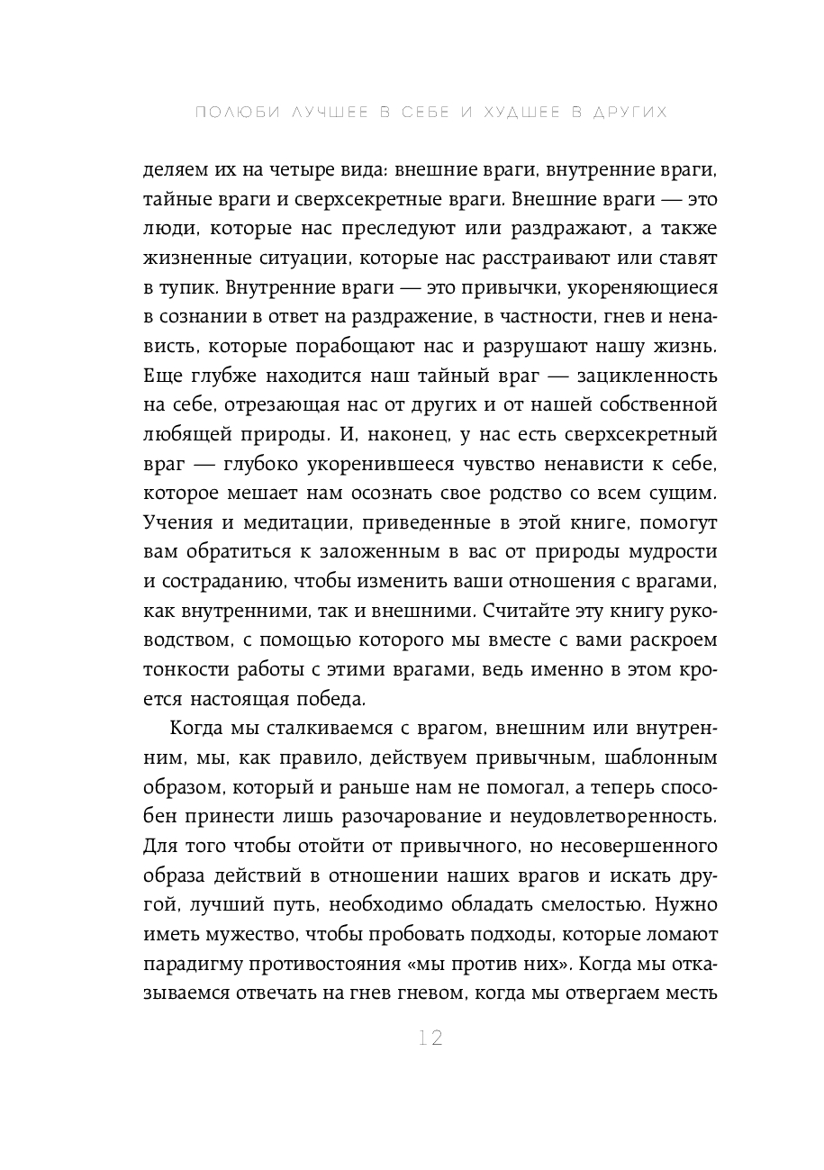 Мы часто видим врагов в окружающих. А когда что-то идет не по нашему, становимся врагами самим себе. Эта книга, написанная преподавателем медитации Шэрон Зальцберг и профессором колумбийского университета Робертом Турманом, призывает отказаться от попыток винить в проблемах других и перестать истязать себя за то, что вы раньше всех не купили недвижимость, не получили второе образование, не смогли дать детям все самое лучшее.