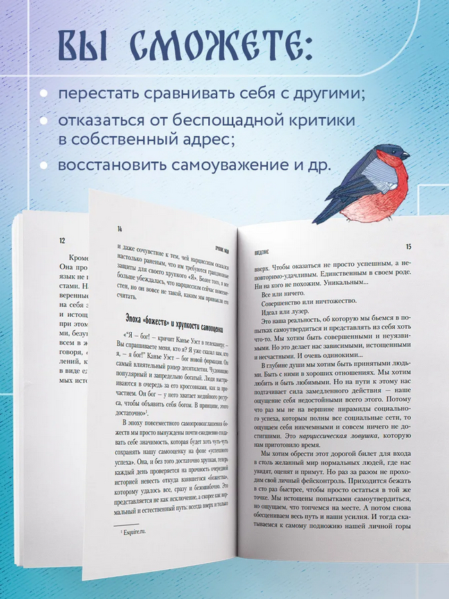 С помощью упражнений и опросников автор предлагает читателю поработать с типичными проявлениями нарциссического характера: тотальной неуверенностью в себе, фоновой тревогой, прокрастинацией, страхом близости.