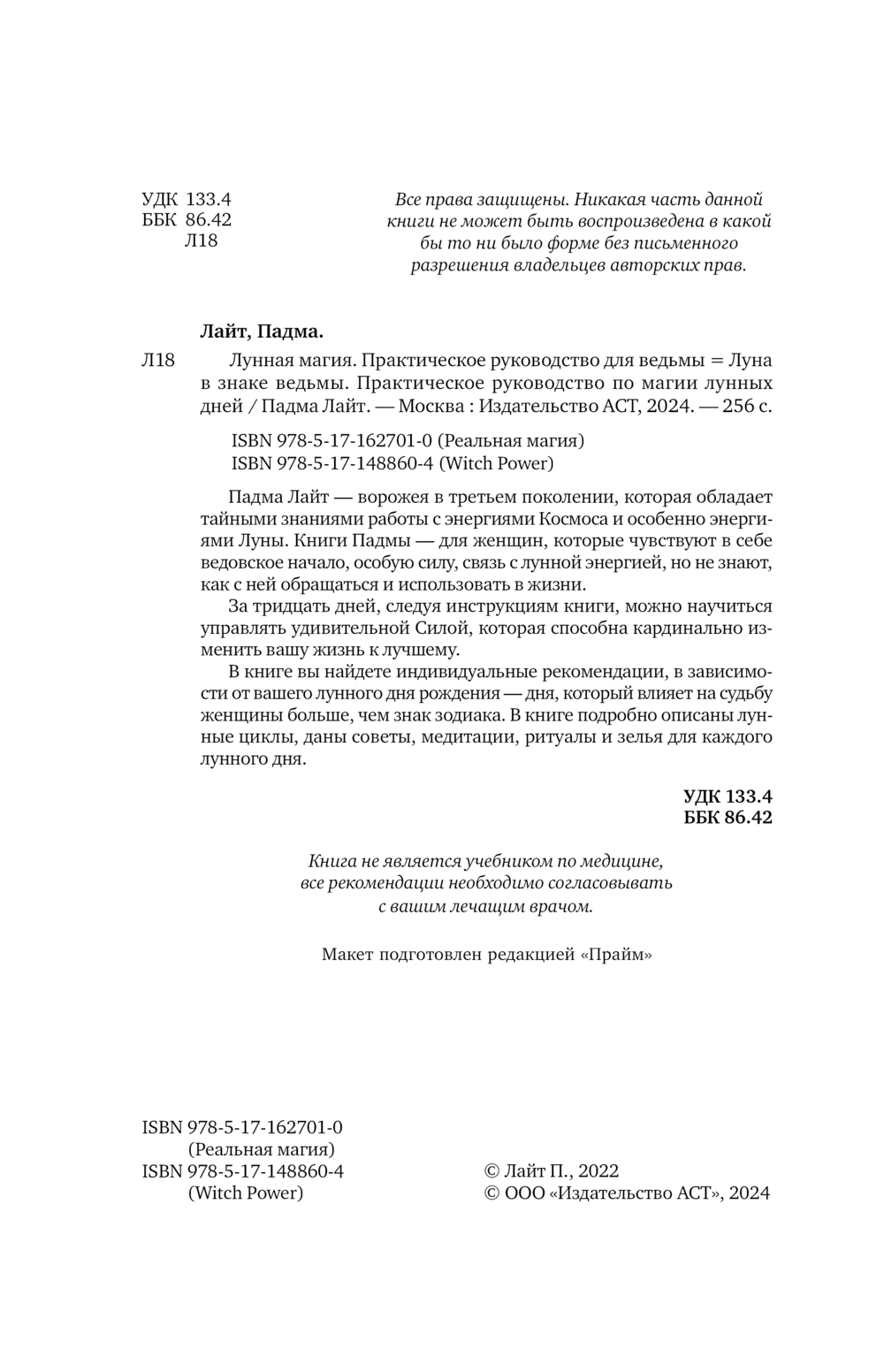 Падма Лайт – ворожея в третьем поколении, которая обладает тайными знаниями работы с энергиями Космоса и особенно энергиями Луны. Книги Падмы – для женщин, которые чувствуют в себе ведовское начало, особую силу, связь с лунной энергией, но не знают, как с ней обращаться и использовать в жизни.