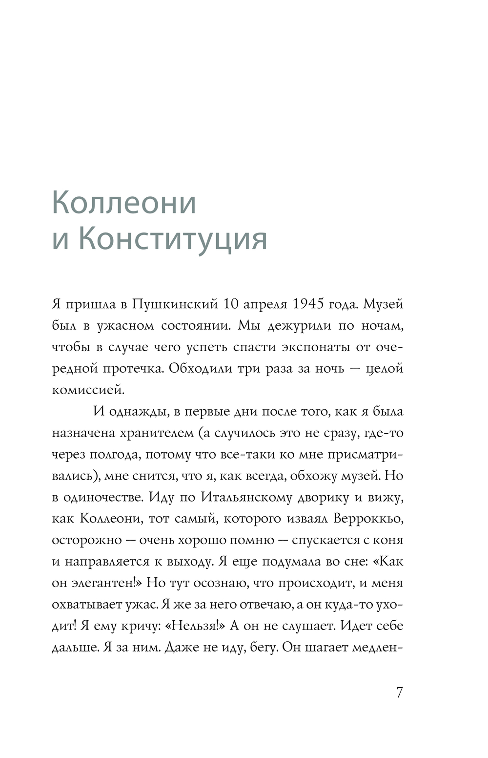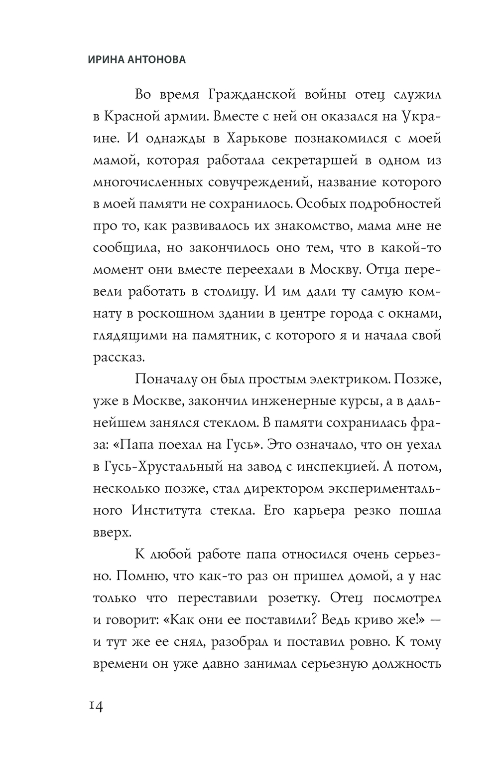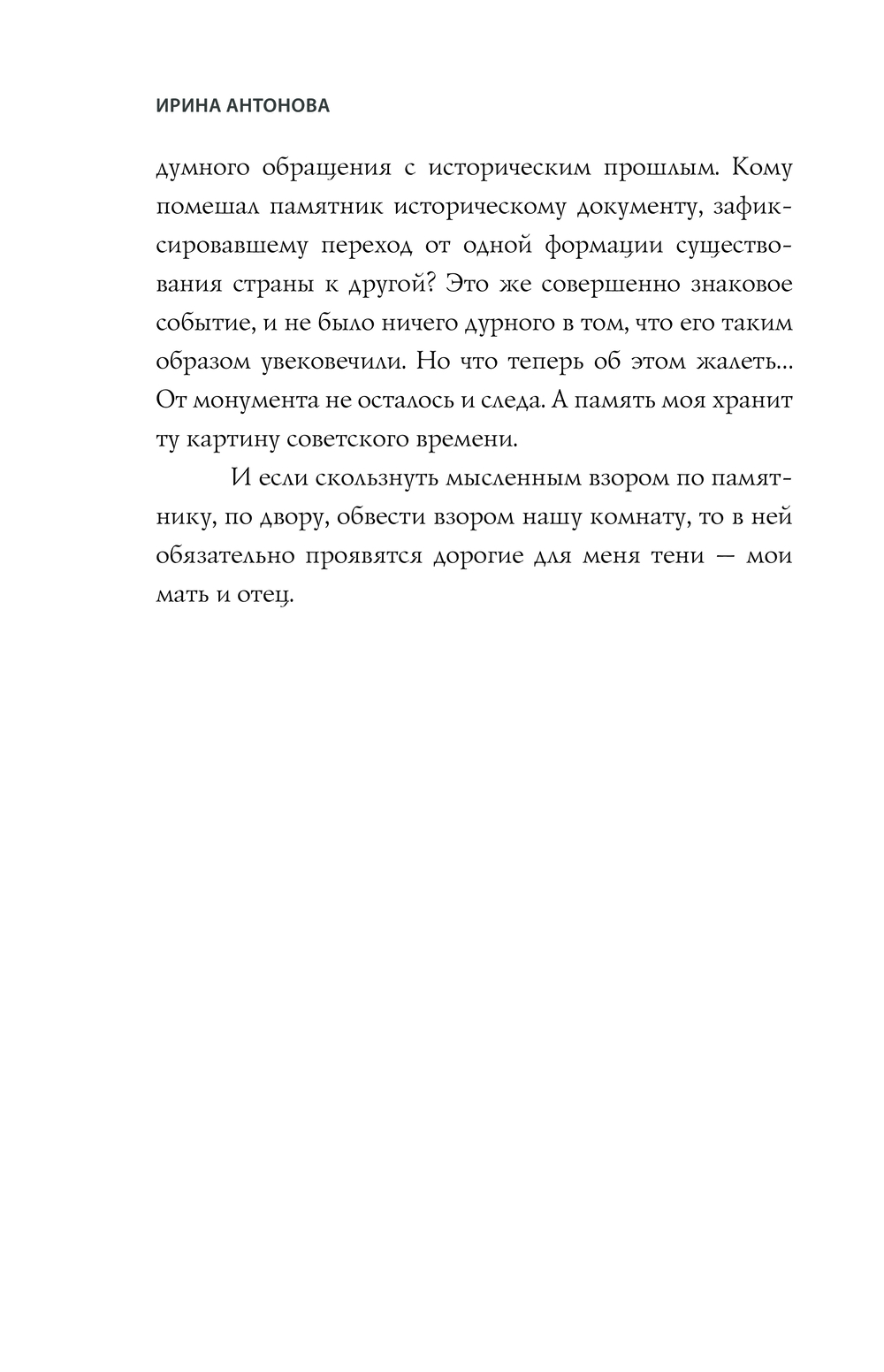 Ирина Антонова – легендарный директор Государственного музея изобразительных искусств имени А.С. Пушкина, где она проработала семьдесят пять лет. Женщина, которую знал весь мир. Те выставки живописи, что она проводила в Музее, становились яркими культурными явлениями Москвы. С ней дружили президенты, политики и послы разных стран, считая для своих государств большой честью представлять музейные коллекции в московском Пушкинском музее. В своей книге она рассказывает о детстве, юности, военных годах, встречах с известными людьми (а среди них Марк Шагал, Илья Эренбург, супруга А. Матисса Лидия Делекторская) и о служении великому искусству.