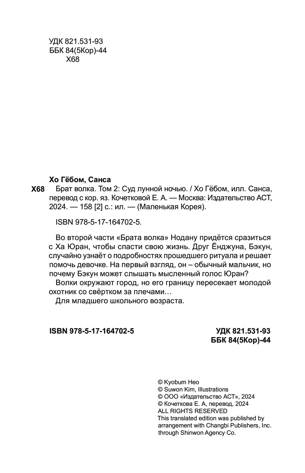 Во второй части "Брата волка" Нодану придётся сразиться с Ха Юран, чтобы спасти свою жизнь. Друг Ёнджуна, Бэкун, случайно узнаёт о подробностях прошедшего ритуала и решает помочь девочке. На первый взгляд, он – обычный мальчик, но почему Бэкун может слышать мысленный голос Юран? Волки окружают город, но его границу пересекает молодой охотник со свёртком за плечами...