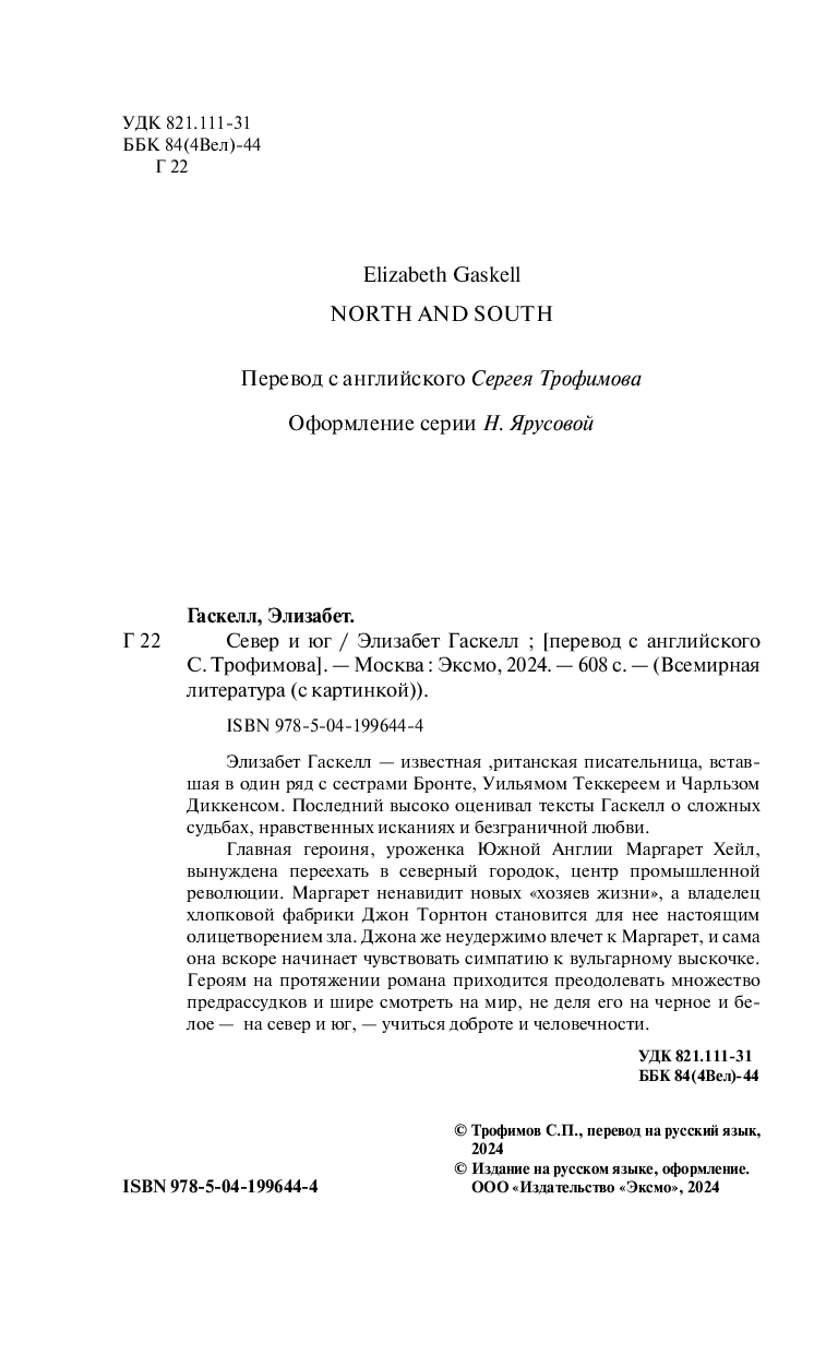Элизабет Гаскелл – известная британская писательница, вставшая в один ряд с сестрами Бронте, Уильямом Теккереем и Чарльзом Диккенсом. Последний высоко оценивал тексты Гаскелл о сложных судьбах, нравственных исканиях и безграничной любви.