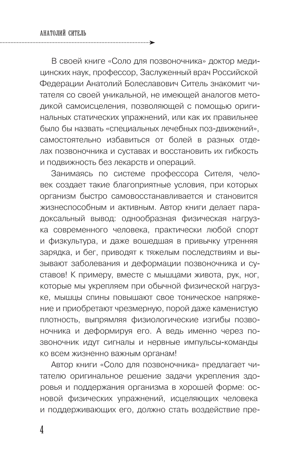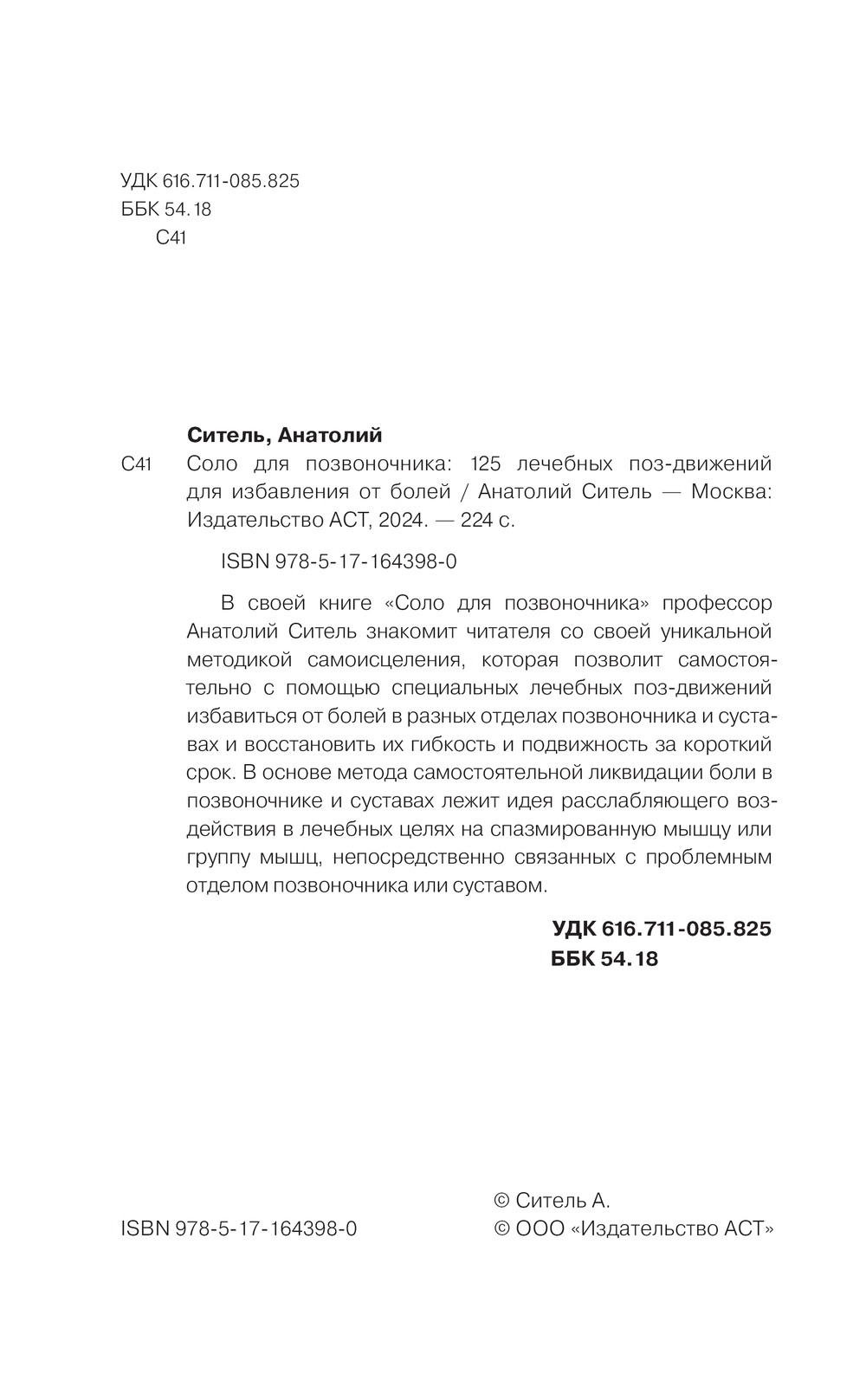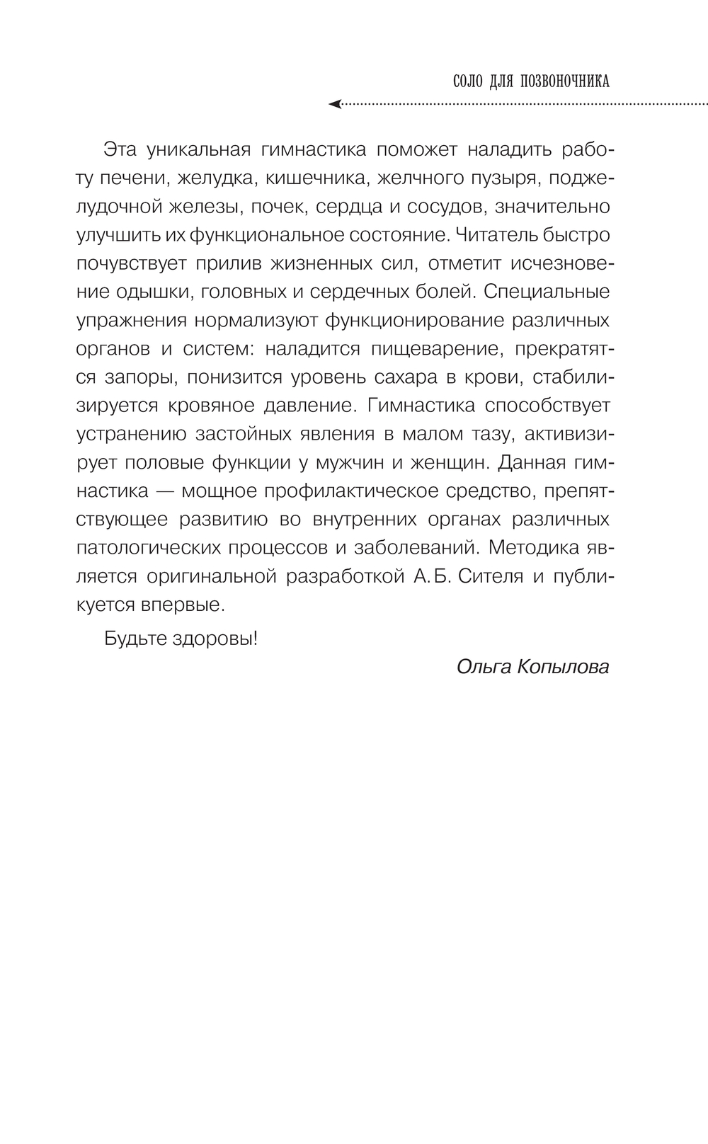 Вашему вниманию представлена книга "Соло для позвоночника: 125 лечебных поз-движений для избавления от болей".