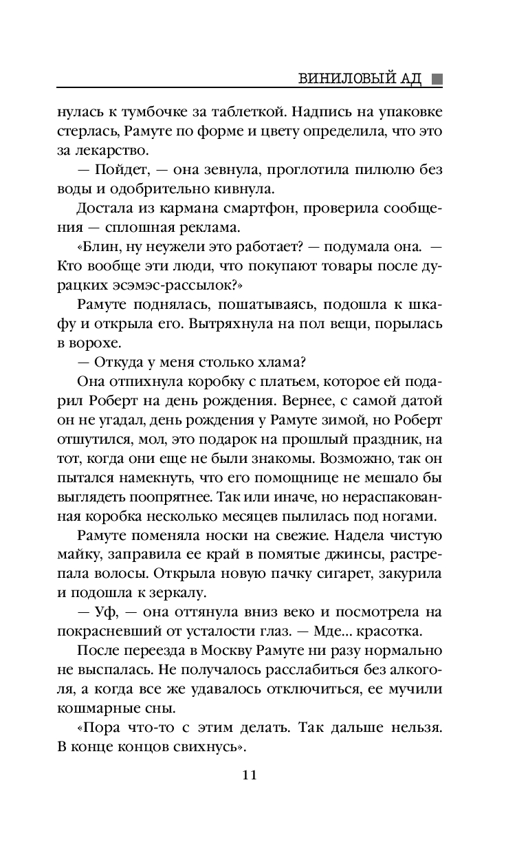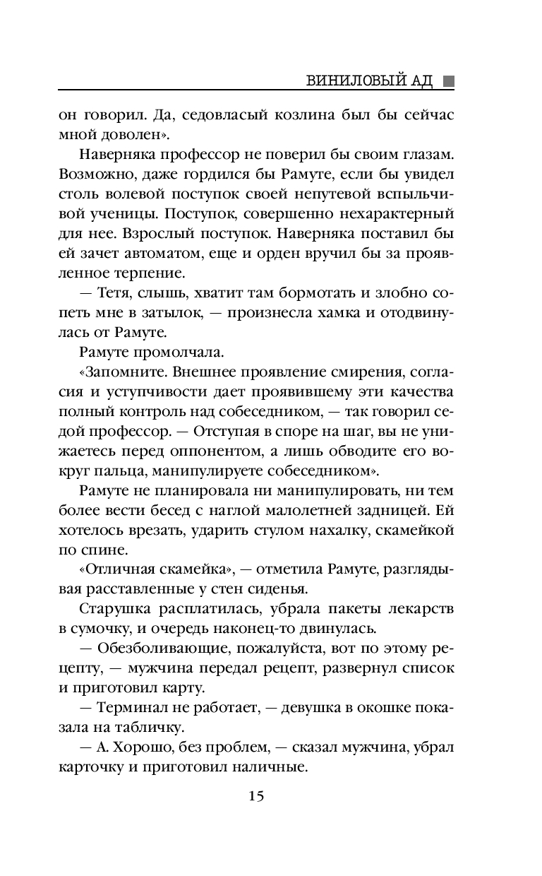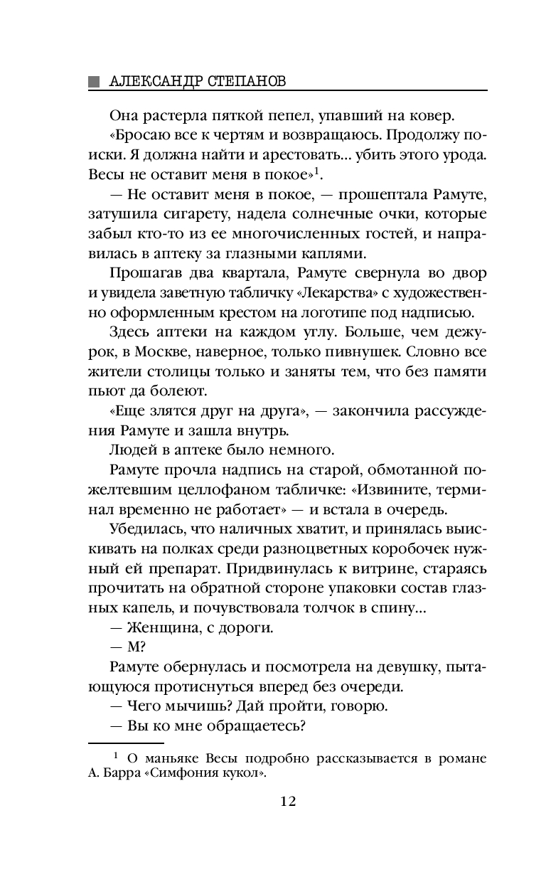 Вскоре у сыщика Федора и его помощницы профайлера Рамуте появилась совершенно дикая версия: это послание, в спиральных порезах что-то записано. С помощью уникальных специалистов удалось снять аудиозаписи с каждого мертвого тела. Качество оказалось отвратительным: невнятный гул, не более того. Но Рамуте, в совершенстве изучившей речевой аппарат и интонации человека, удалось разобрать одну фразу...